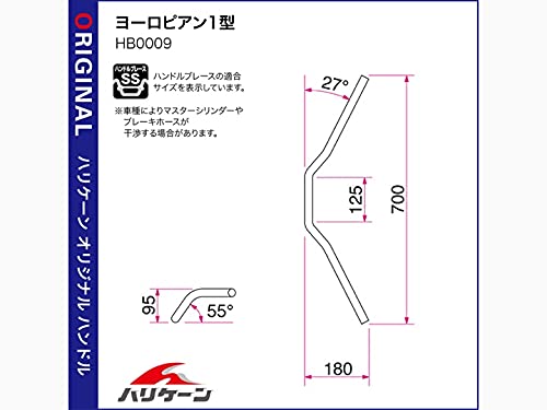 ハリケーン(HURRICANE) ハンドルバー P7/8インチ ヨーロピアン1型 クロームメッキ HB0009C-01
