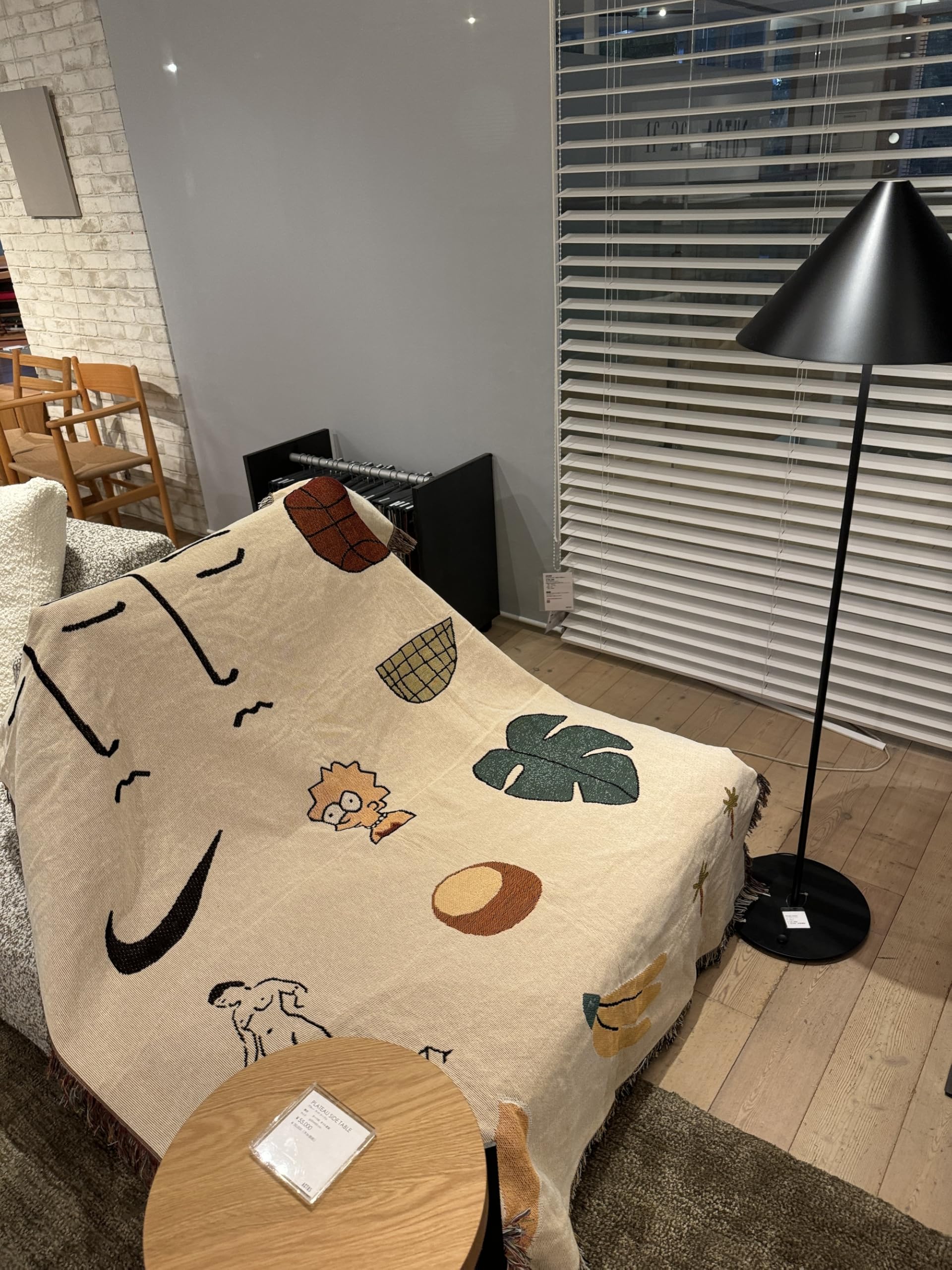 赤ちゃんの絵が入っていてユニークなものが好きな方に似合うアイテムです。 絵が可愛くて子供がいる家庭にもよく似合いそうです。 写真のようにリビングラグの上にポイントで敷いてくれてもきれいです。 ファブリック製品一つでリビングの雰囲気を変えることができます:)