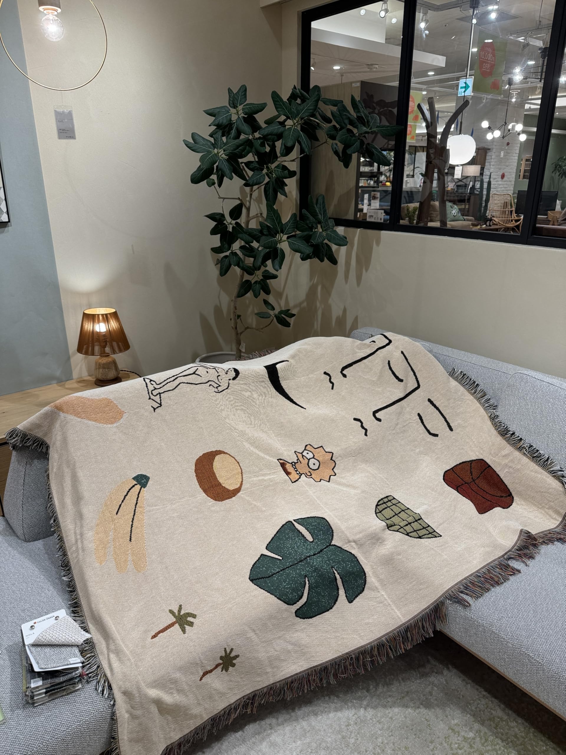 【新着商品】Peel Forest 面白い 柄 おしゃれ ブランケット シンプソンズ ラグ 北欧ひざ掛けベージュ (130X160cm)