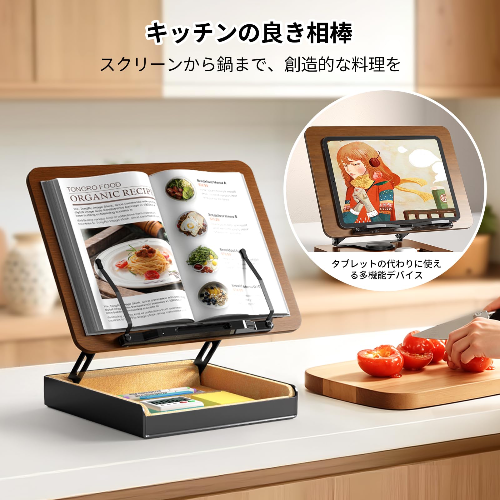【多機能設計】 組み立て不要で開封後すぐ使用可能。レシピ本やタブレット、大半の13インチノートPCをしっかりホールド。ホームオフィス・リビング・図書館・学校・練習室・カフェなど、多様な場所で活用できるブックスタンドです