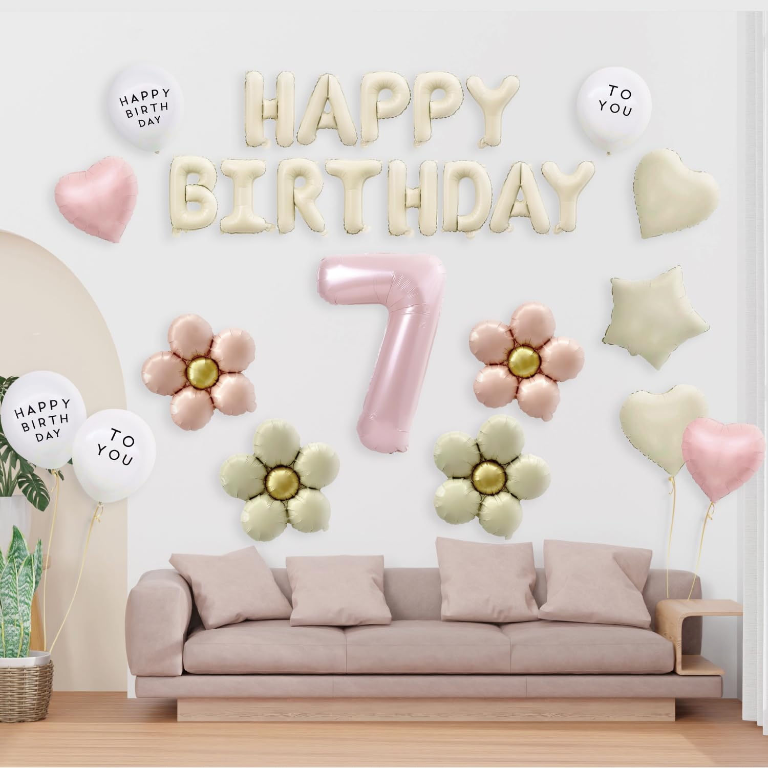 【風船屋】誕生日 飾り付け バルーン かわいい お花 子ども ハート フラワー ピンク 女の子 ほんわか おしゃれ サプライズ プレゼント 映え (7歳)