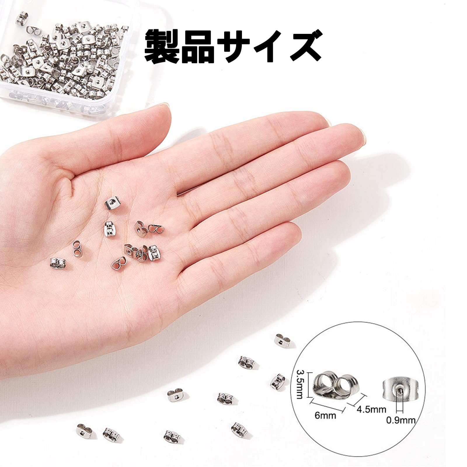【セット内容】各セットには200個のピアスキャッチが含まれており、収納ボックスが付いています。予備や交換用として十分対応でき、ピアスキャッチを失くす心配がありません。必要な分だけ確保できるので、足りなくなる心配もありません。