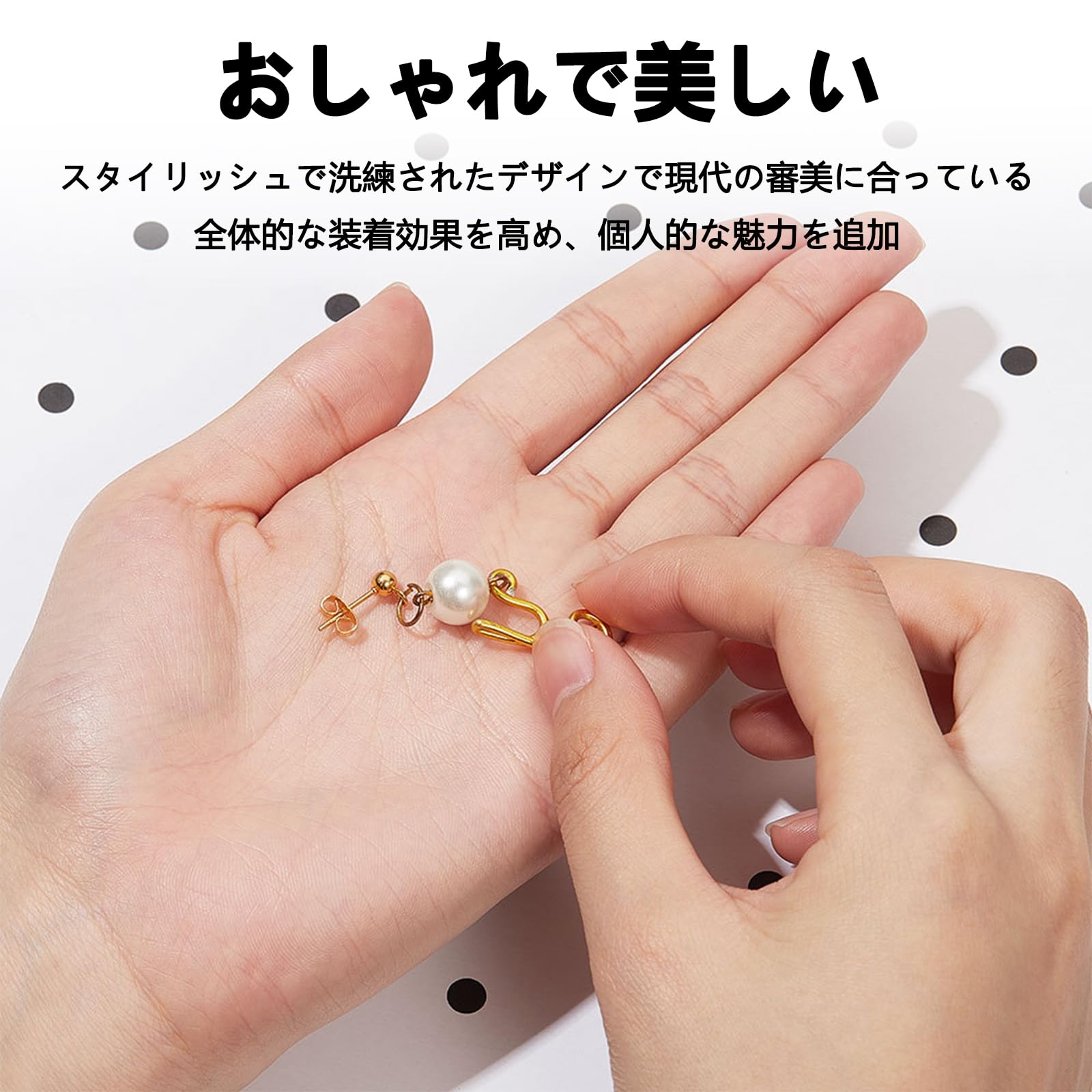 ピアスのポスト(棒部分)にキャッチを差し込むだけで簡単に装着できます。しっかりと固定されるため、長時間の着用でも落ちにくく安心です。使用後は付属の収納ボックスで整理し、紛失を防ぎます。