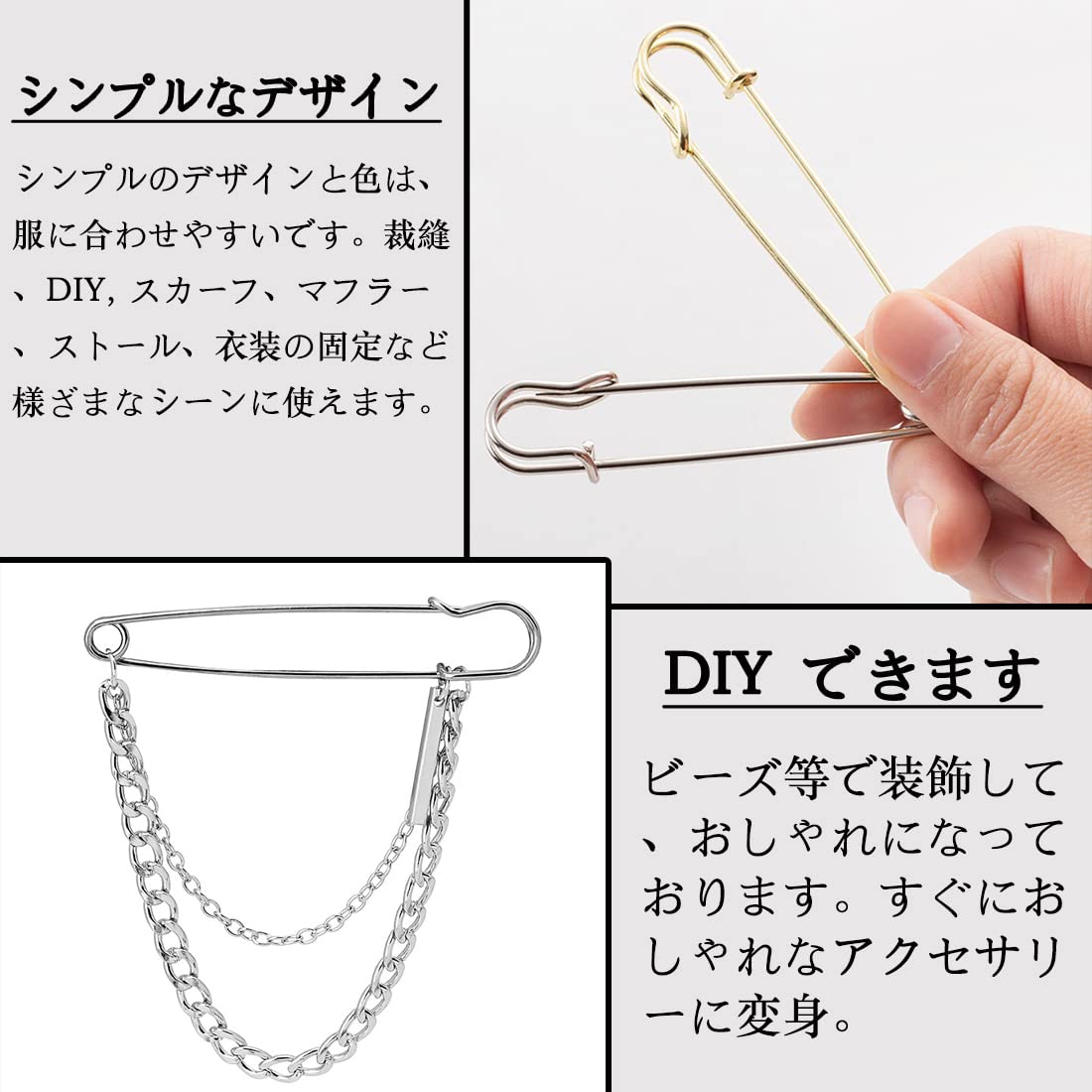 【高品質&安全デザイン】丈夫で、大きいサイズのおしゃれの安全ピンです。合金鋼を採用しており、硬度が高くて、長くご使用いただけます。さらに、ロックタイプの安全ピンなので、曲がった溝が針先を覆っていて、より安心して使えます。