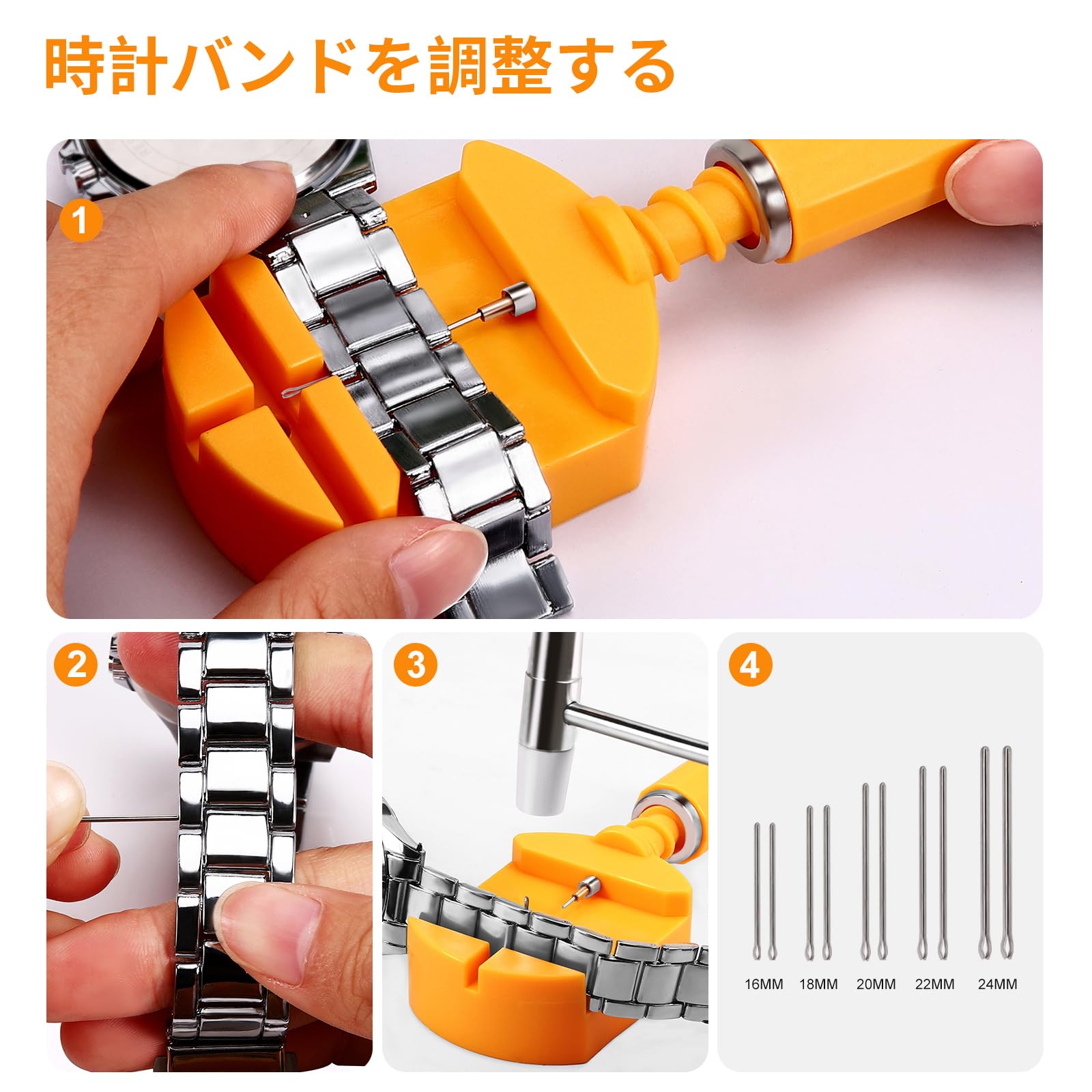【多機能時計修理キット】 ヘキオの時計修理工具を使用すると、ストラップの交換だけでなく、スチールバンドの長さを調整することもできます。