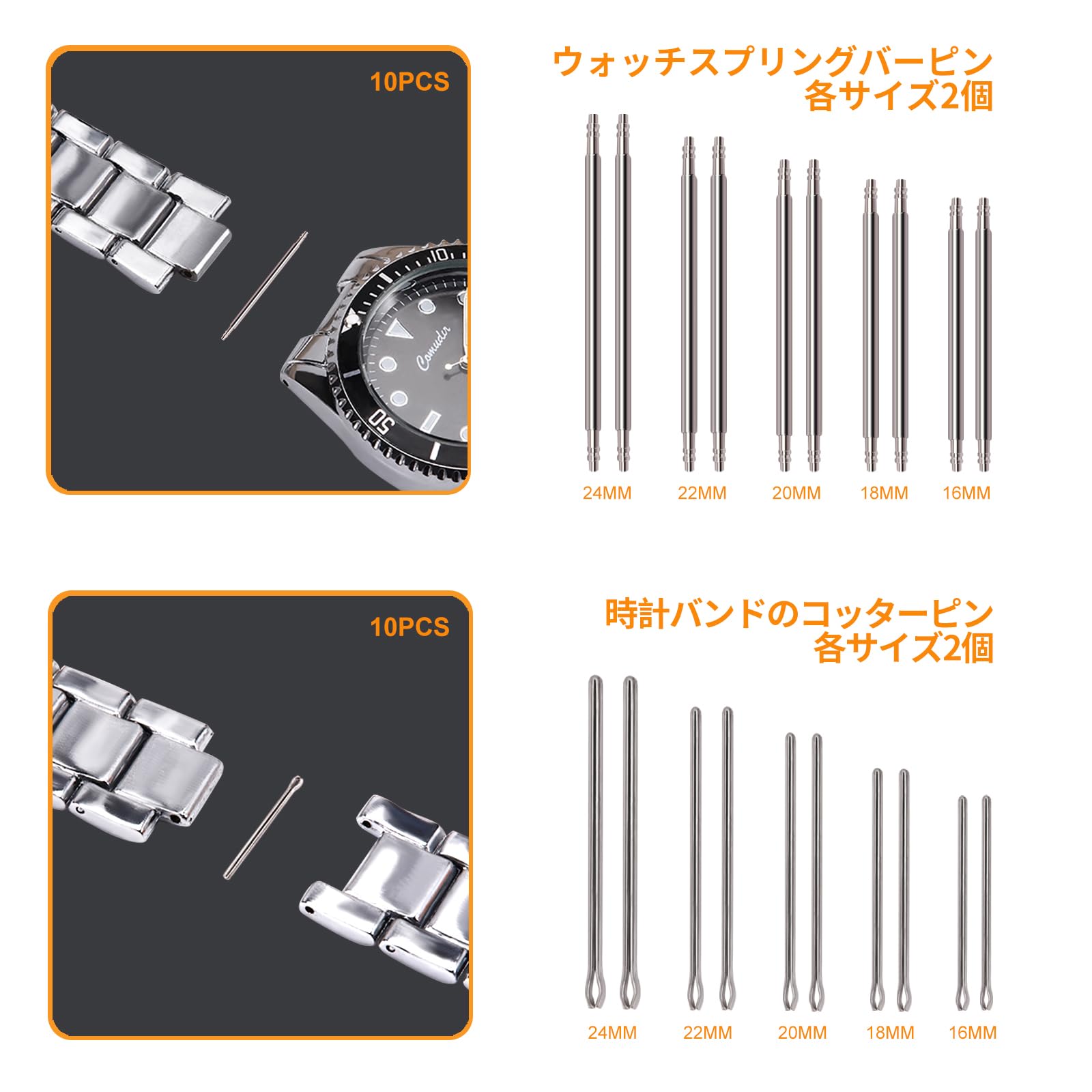 BeeCaut 時計工具バンド調整 サイズ調整 腕時計工具 ベルト交換 ウォッチ修理ツール バネ棒外し 10本スプリングバー 付き ピン抜き工具 10本コッターピン 付き