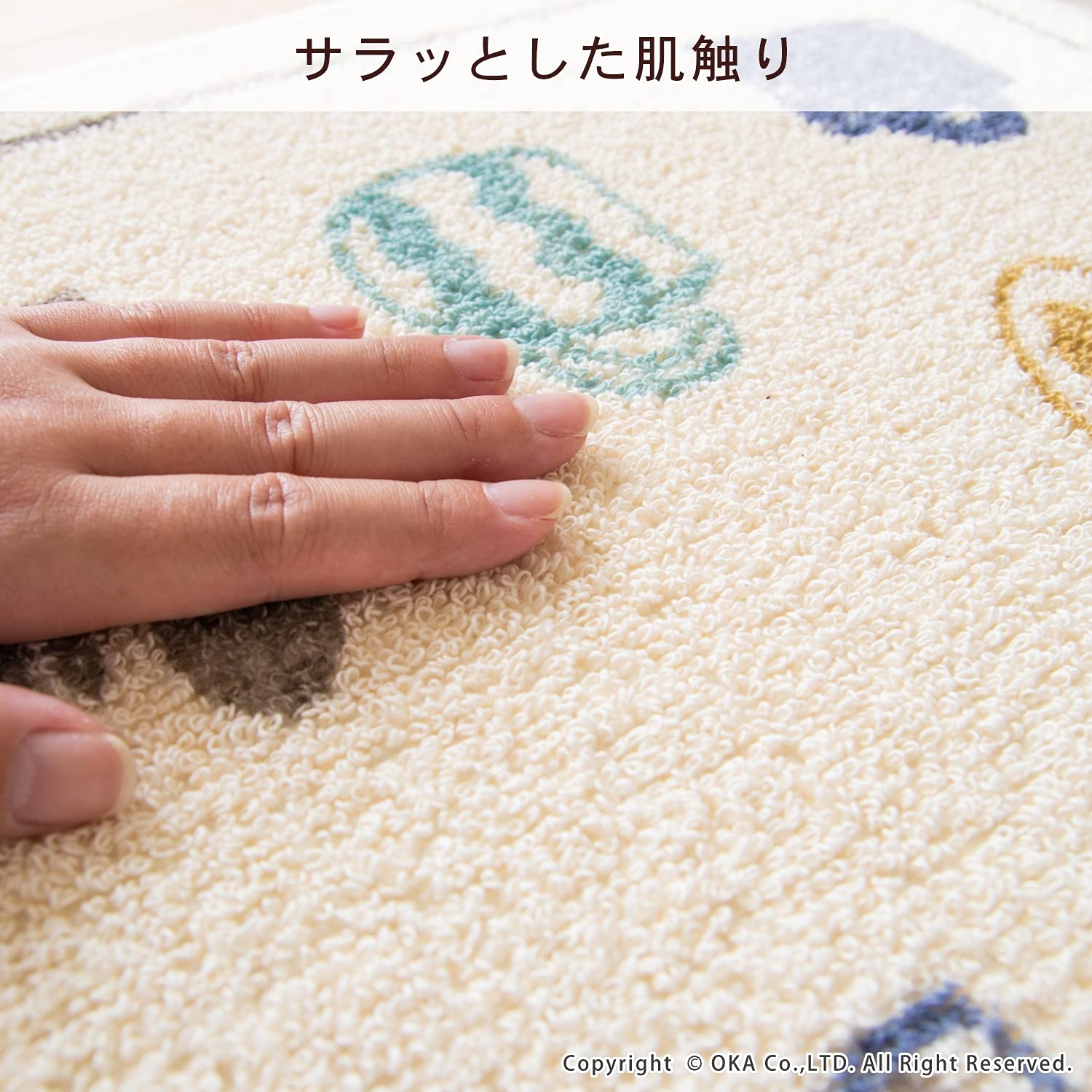 マットは、シャツなどを製造するときに出るハギレを再利用し、糸にした再生糸でできた生地にプリントしました。