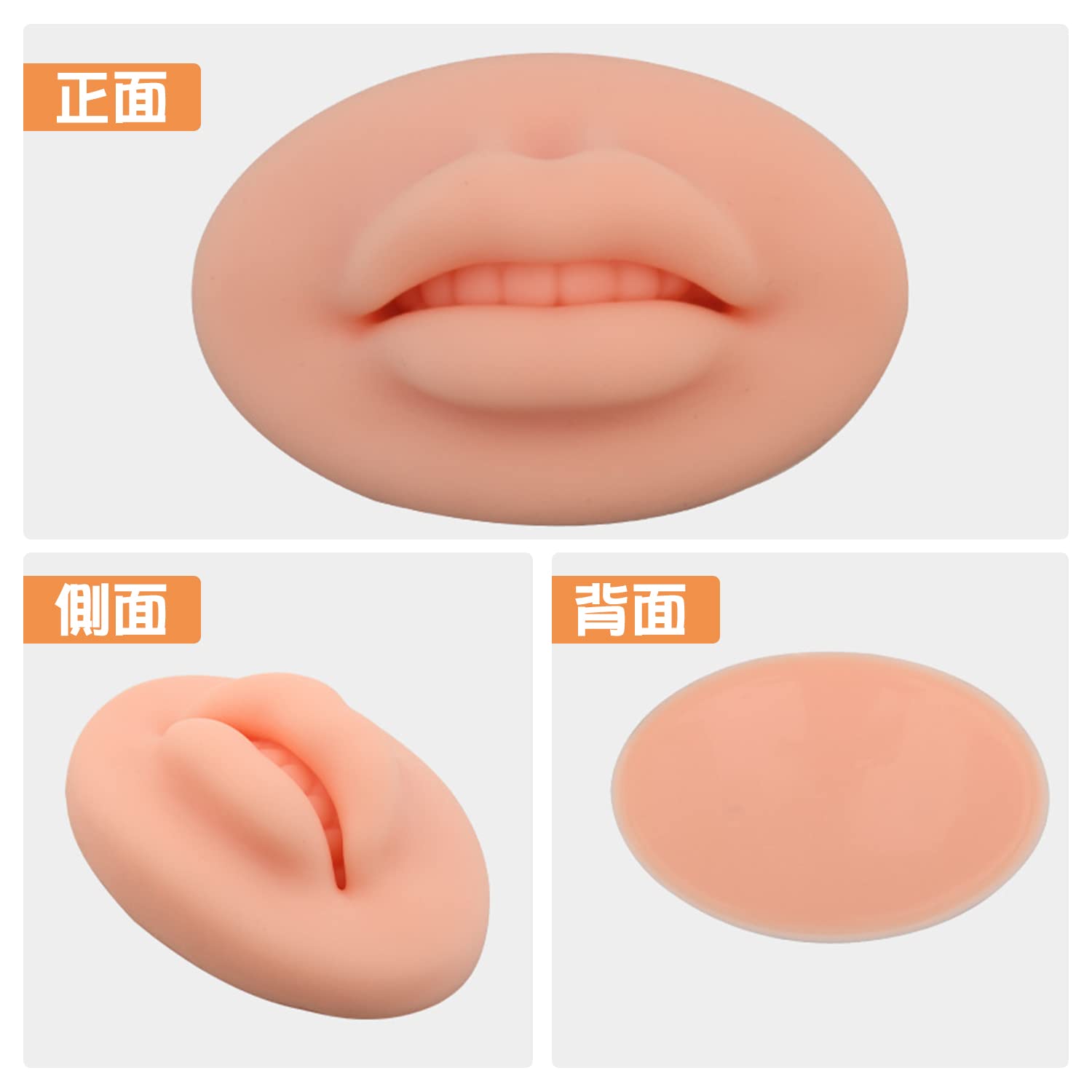 【材質】ソリッドシリカゲル材質、材質は柔軟で、色を塗りやすく、歯の形のアップグレードモデルがあり、古い唇のタトゥー練習より肌が生き生きしている。