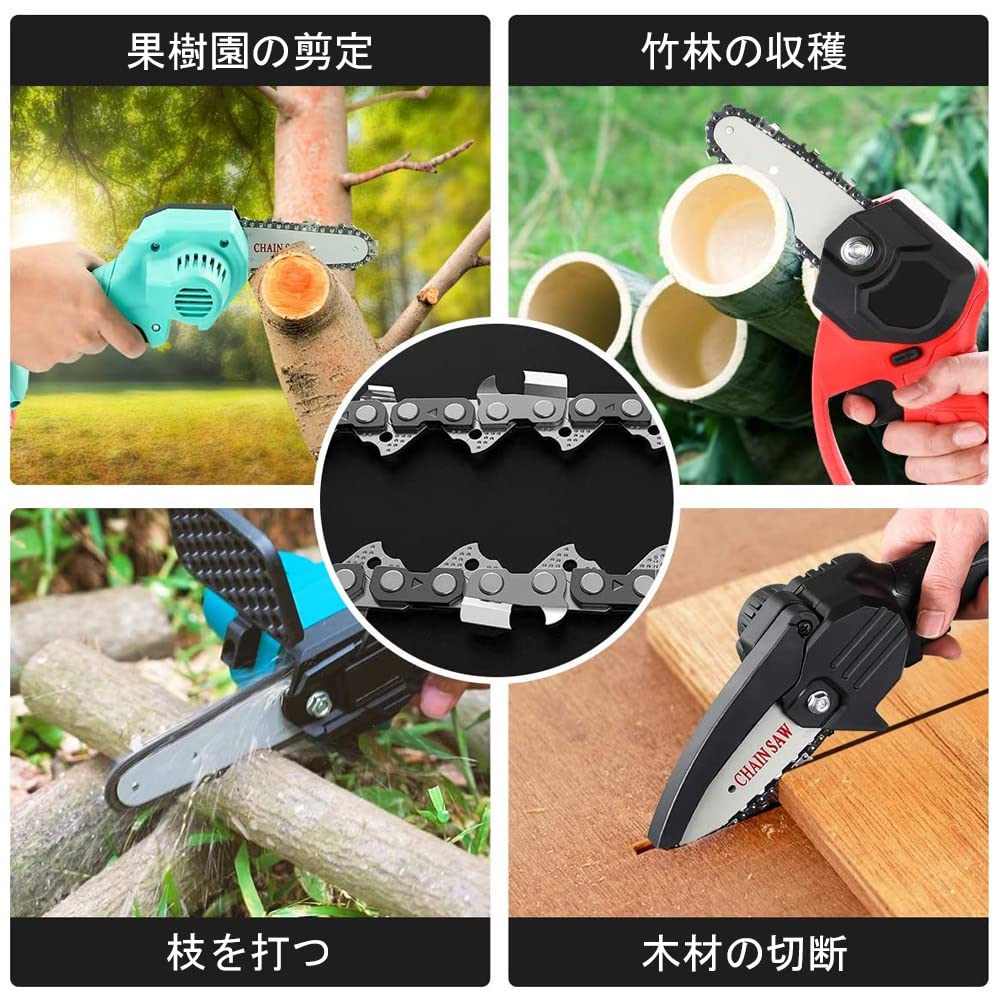 WETARENDA チェーン刃 4インチ チェーンソー 替刃 チェーン チェンソー替え刃 チェーンソー 交換刃 木工切断 枝切り 伐採 チェーンソーアクセサリ 電動のこぎりアクセサリー交換 家庭用 園芸用 4点セット