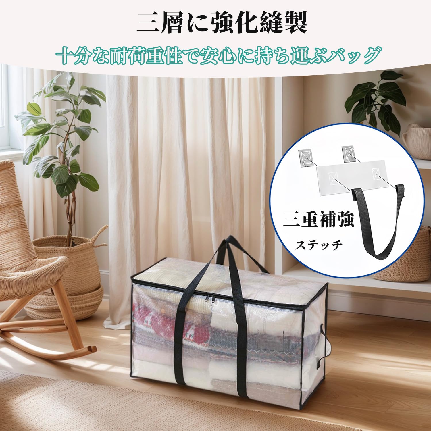 HIHIMARVEX 布団収納袋 特大容量 収納ケース 大きいバッグ 防水 防塵 大開口 布団収納カバン 折りたたみ式 引越しバッグ 持ち手付き 大型収納袋 耐荷重 羽毛布団 衣類 日用品 おもちゃ キャンプ用品収納 (透明色 4枚)