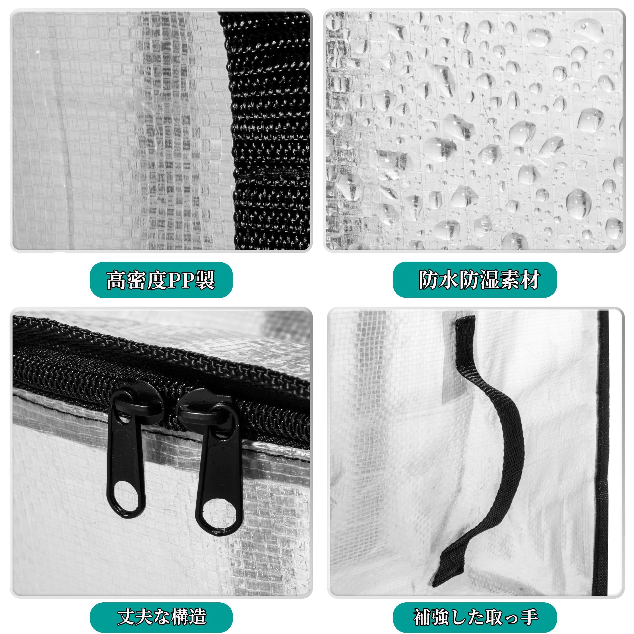 【耐久性・安全性】:高密度PP不織布を使用した収納バッグは、人体に安全な素材で作られており、直接触れても安心です。三重に補強されたステッチ加工により、周辺部分の耐摩耗性を高め、優れた耐圧性能を実現しました。上部と側面に設けた幅広のハンドルは、手への負担を軽減し、運搬が楽に行えます。表面には防水コーティングを施し、防水・防湿・防塵・耐撕裂の4つの機能を兼ね備えています。内側には傷防止加工を施しているため、貴重品を収納・輸送する際にも安心です。雨の日の引っ越しも梅雨時の保管も安心!この収納袋、あなたの暮らしに必要な布団袋です。