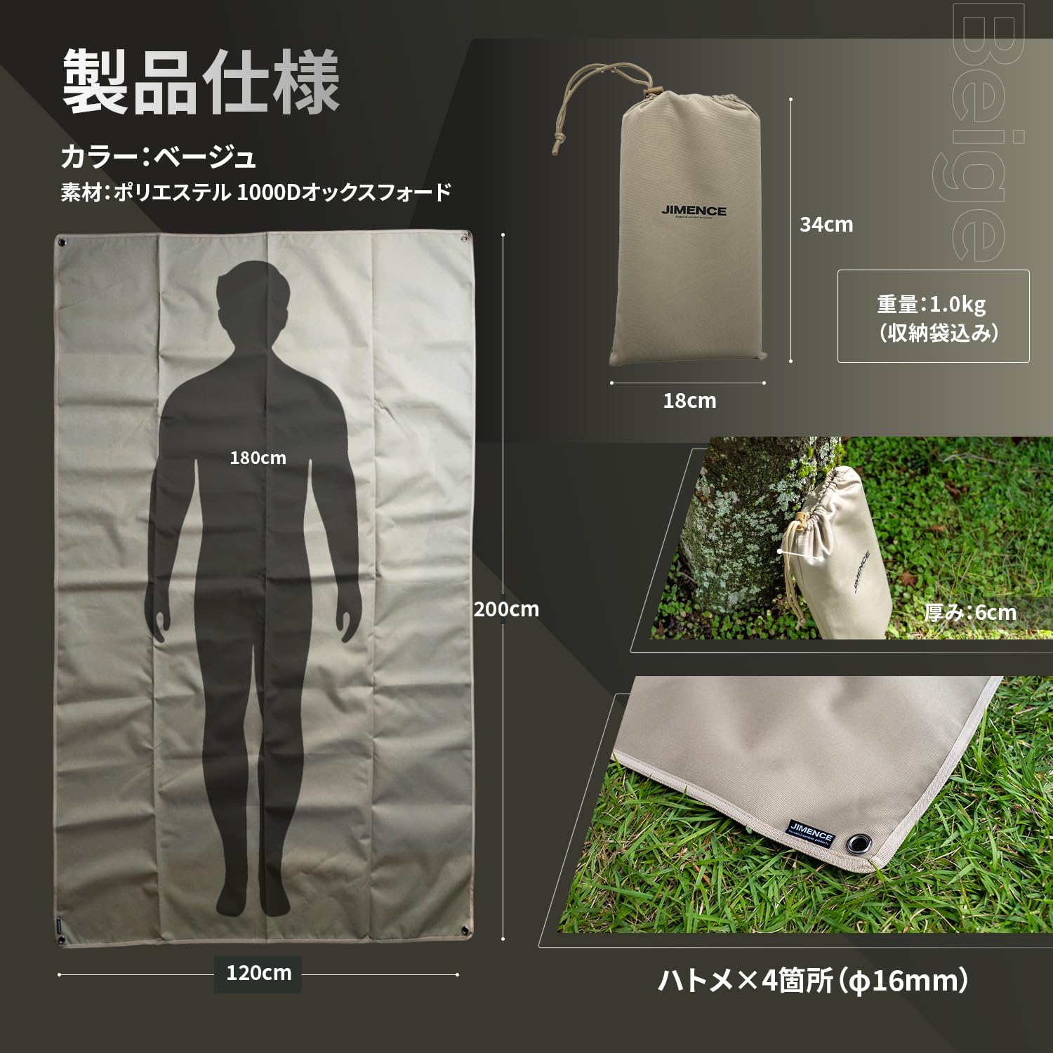 JIMENCE(ジーメンス) グランドシート 厚手 1000D 120×200cm 防水 両面撥水 収納袋付き ソロ用 (ベージュ)