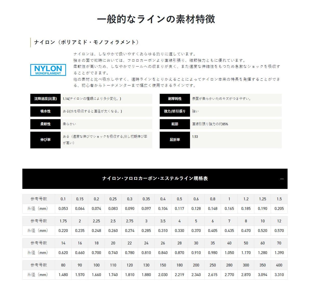 ●巻きグセがつきにくく、強さとしなやかさを合わせ持った糸質は、操作性に優れる上に汎用性も高く、使うフィールドを選びません。 ●初心者からベテランまで、繊細な釣りから大物狙いとあらゆるジャンルの釣りに幅広くお使いいただけるナイロンラインです。 ●2号?20号には視認性を重視する場合やお好みに合わせてお選びいただけるように、ミストグレー・クリアー・ブルー・ピンク・イエローの5色をラインナップ。