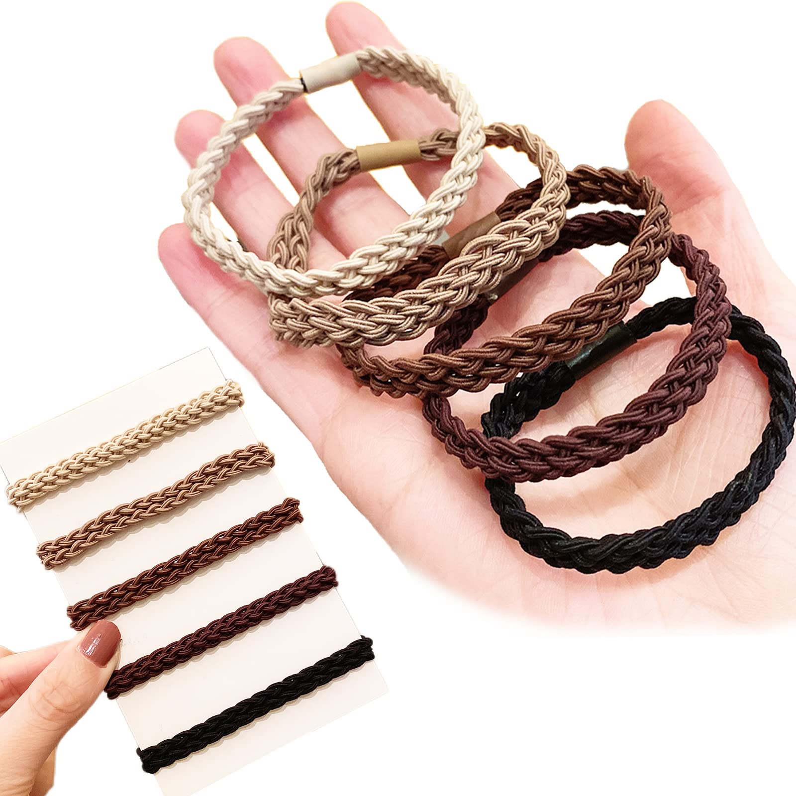 [アオラー]Aollaaヘアゴム 髪ゴム【編みロープ風5色10個入】韓国風 メンズ レディース おしゃれ大人ヘアゴム ヘアアクセサリー シンプル 無地 髪馴染み良い アースカラー エレガント ヘアリング 髪留めゴム ヘアアレンジ