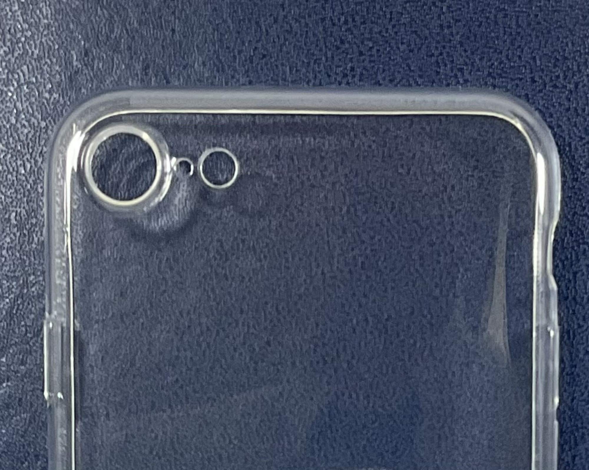 ■透明感の高いクリスタルクリア、ストラップホール付き。スピーカー部分は小穴、背面はドット加工になっております。