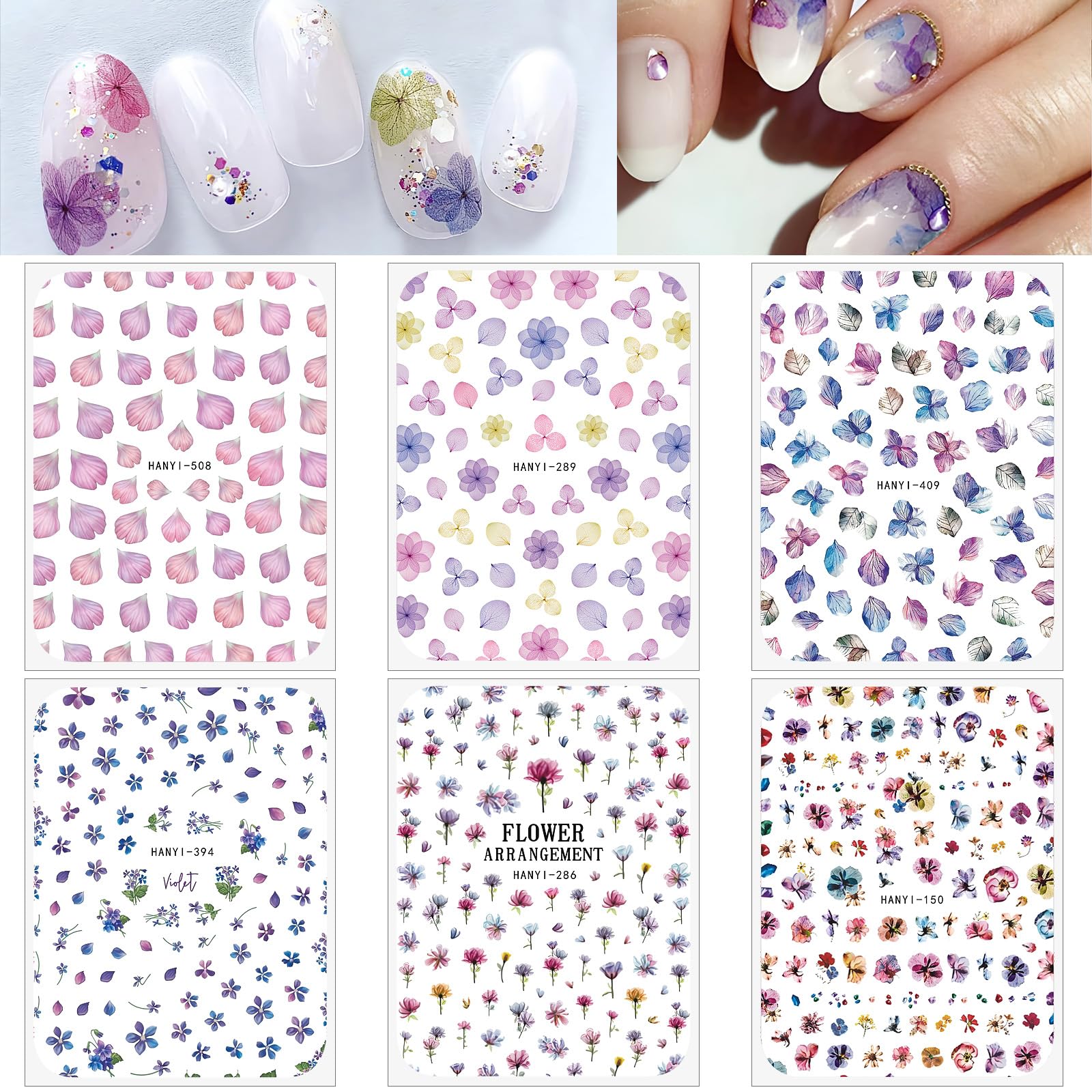 【2つのスタイル】紫陽花ネイルシール*3、青い花ネイルシール*3、異なる形と様々な色で、個人的な好みに応じて自由に組み合わせて使用することができます