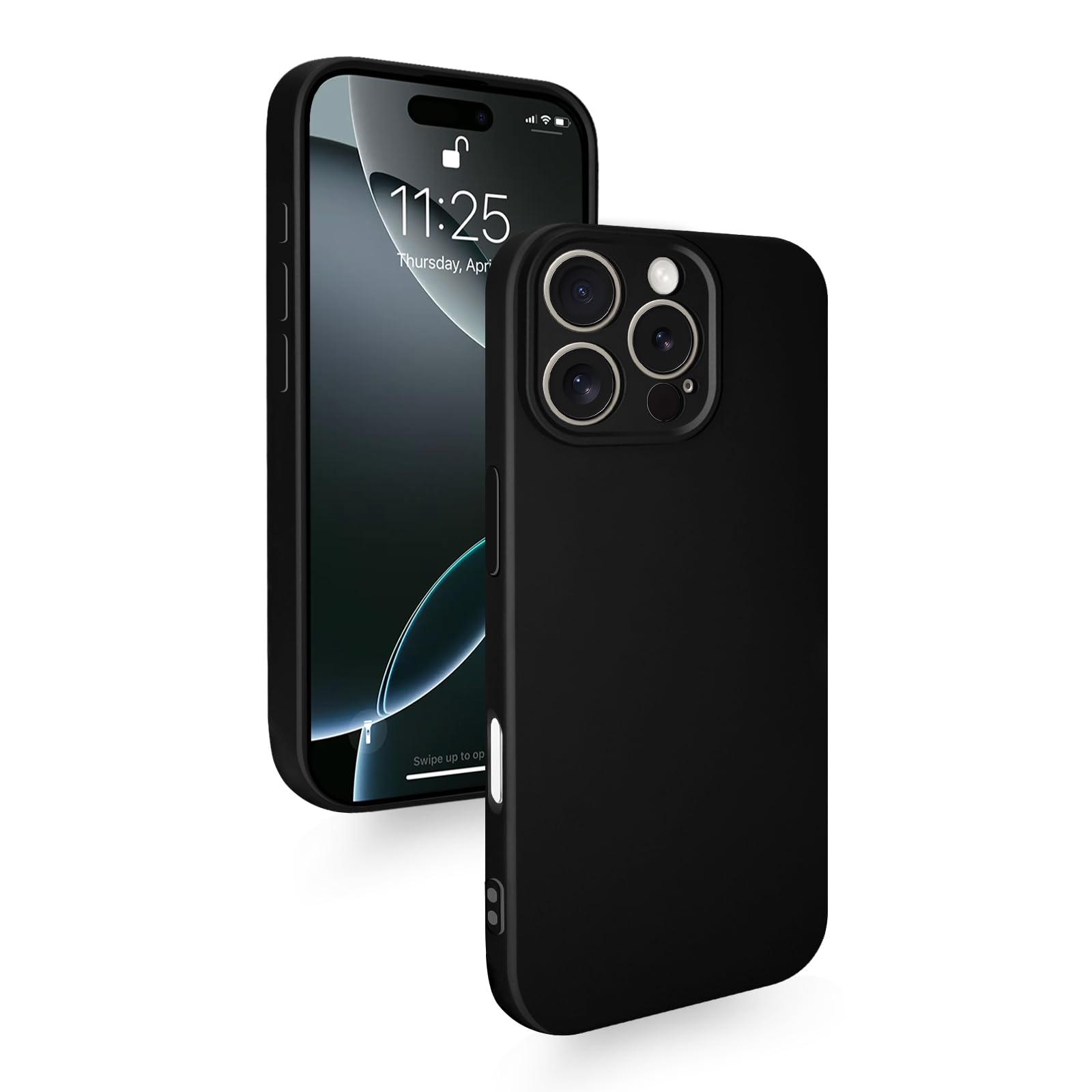 iPhone 16ProMax ケース シリコン 耐衝撃 カバー 軽量 薄型 柔軟 アイフォン16ProMax スマホケース レンズ保護 ワイヤレス充電 マット質感 指紋防止 擦り傷防止 落下防止 滑り止め ストラップホール付き Zeunoen (ブラック)