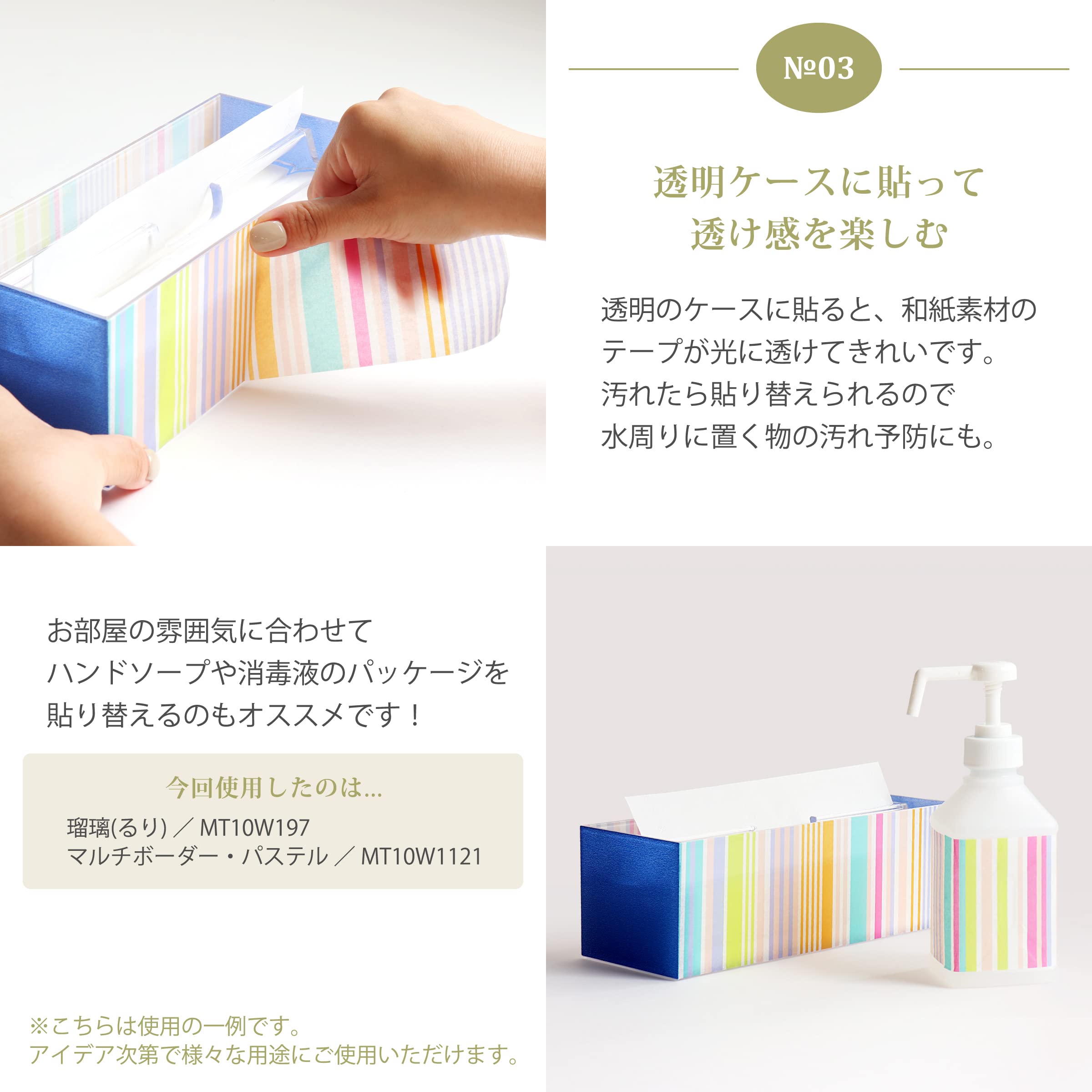 カモ井加工紙マスキングテープは、再剥離の粘着を持っており、簡単に貼ることができます。手で簡単に切れるため、失敗しても貼り直しが可能です。楽しみながら安心して使用できます。