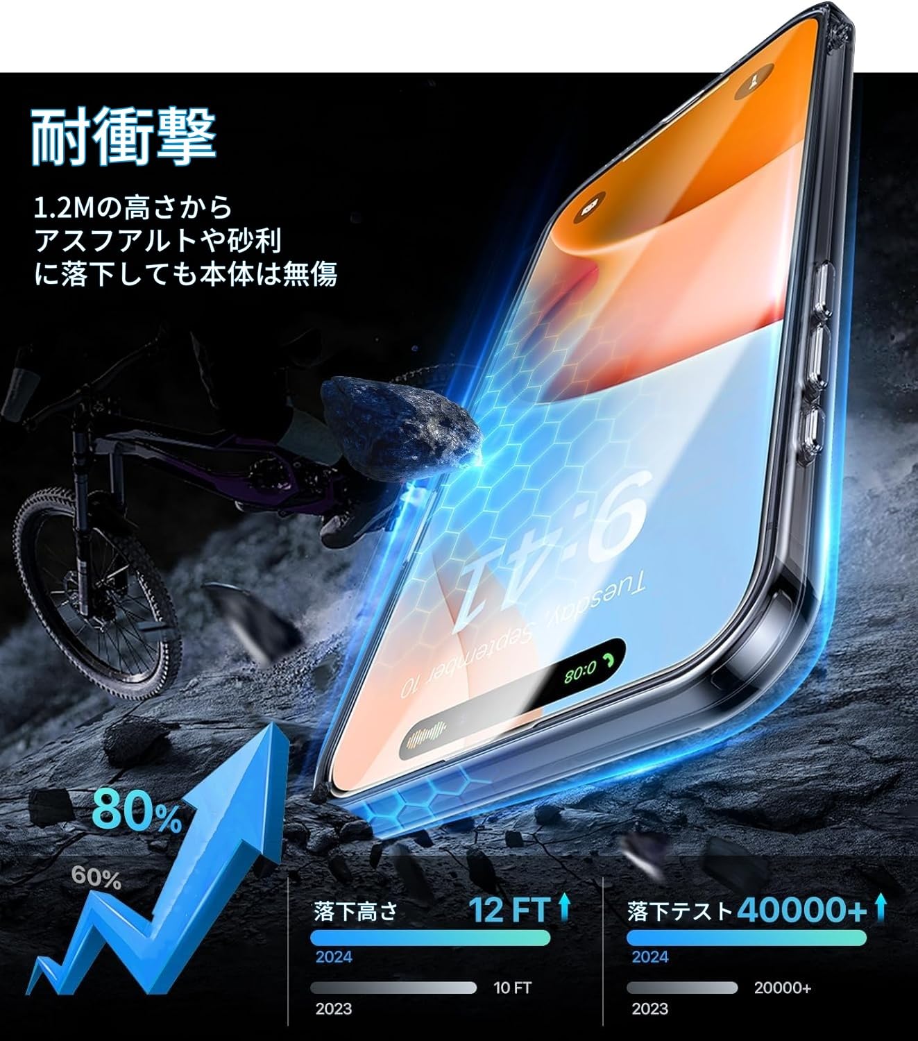 【耐衝撃&細部まで保護】高品質のTPU素材を採用することで、外部からの衝撃をしっかり吸収できます。さらにカバーの縁はアイフォン16の液晶画面より1mm高く、カメラレンズより0.75mmの高めに設計で、外物との擦り傷を避けるし、いPhone16の細部まで保護します。