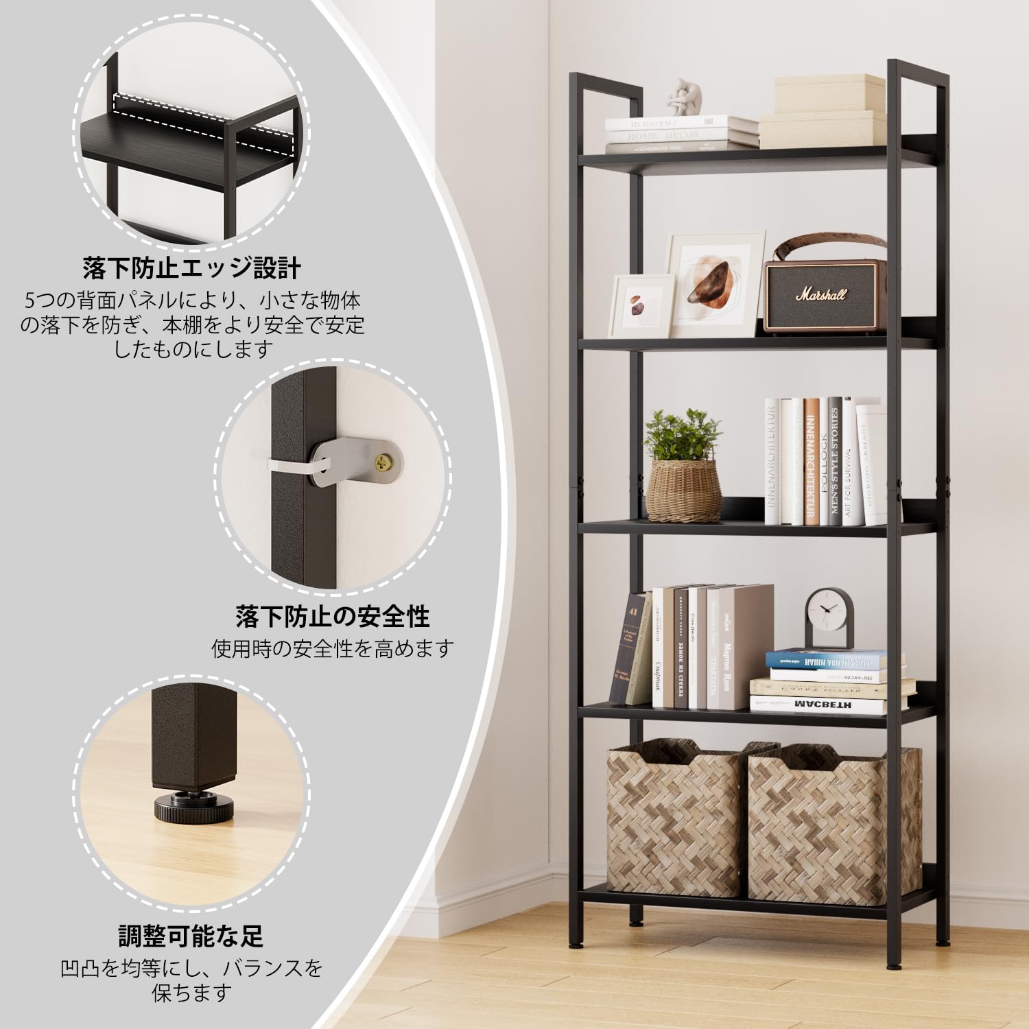 kukeimaru 5段本棚 オフィス収納棚 幅60㎝×奥行30㎝×高さ153.5㎝ リビング、寝室、オフィスに適用する 黑