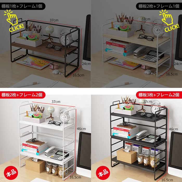 【人気商品】オープンラック 本棚 デスク収納 ラック 上置棚 シェルフ 収納ラック 棚 収納棚 北欧 机上ラック テーブルラック本 文房具 飾り 小物置き 整理 組立簡単 (棚板3枚 ウッド色棚板+白色フレーム)