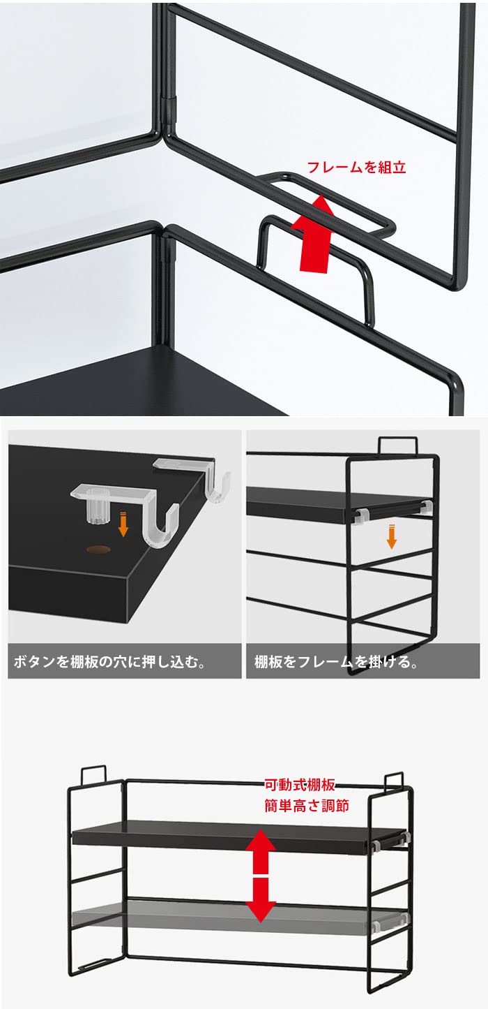 ●取付簡単 取付方法が簡単です。 商品ページの画像に取付方法がありますので、ご参照の程、お願い致します。商品サイズ:棚板1枚、棚板2枚:サイズ:370mm×240mm×165mm、棚板3枚:サイズ:370mm×460mm×165mm。