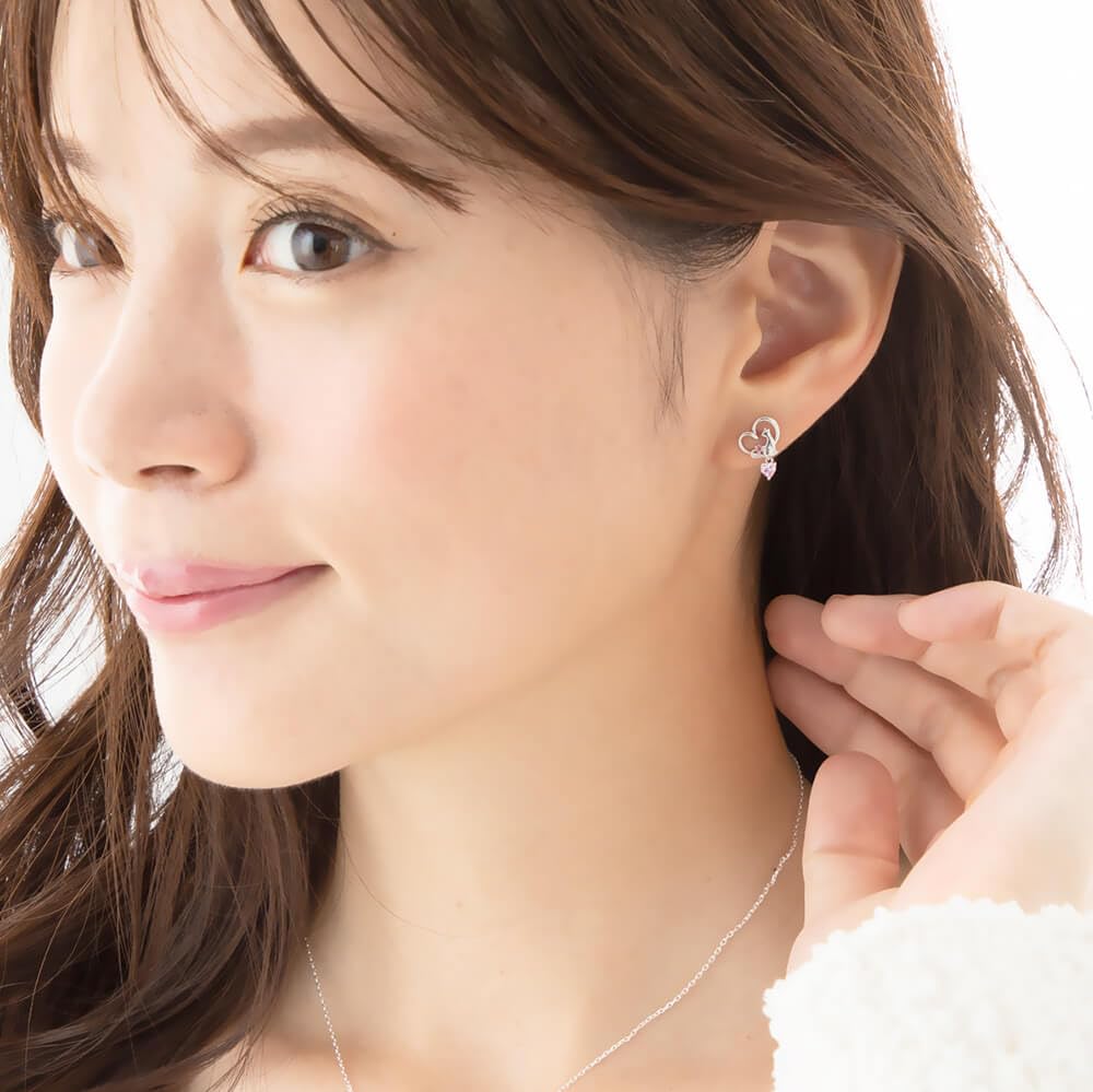 ハートモチーフの中にいるキュートなネコちゃん!しっぽで作られるお好みの誕生石から作られる隠れハートが特徴!モチーフの下にはゆらゆら揺れるハートカット最高級ジルコニアがキラリ☆彡華奢でキュートな猫モチーフピアスです。素敵なプレゼントになりそうですね。