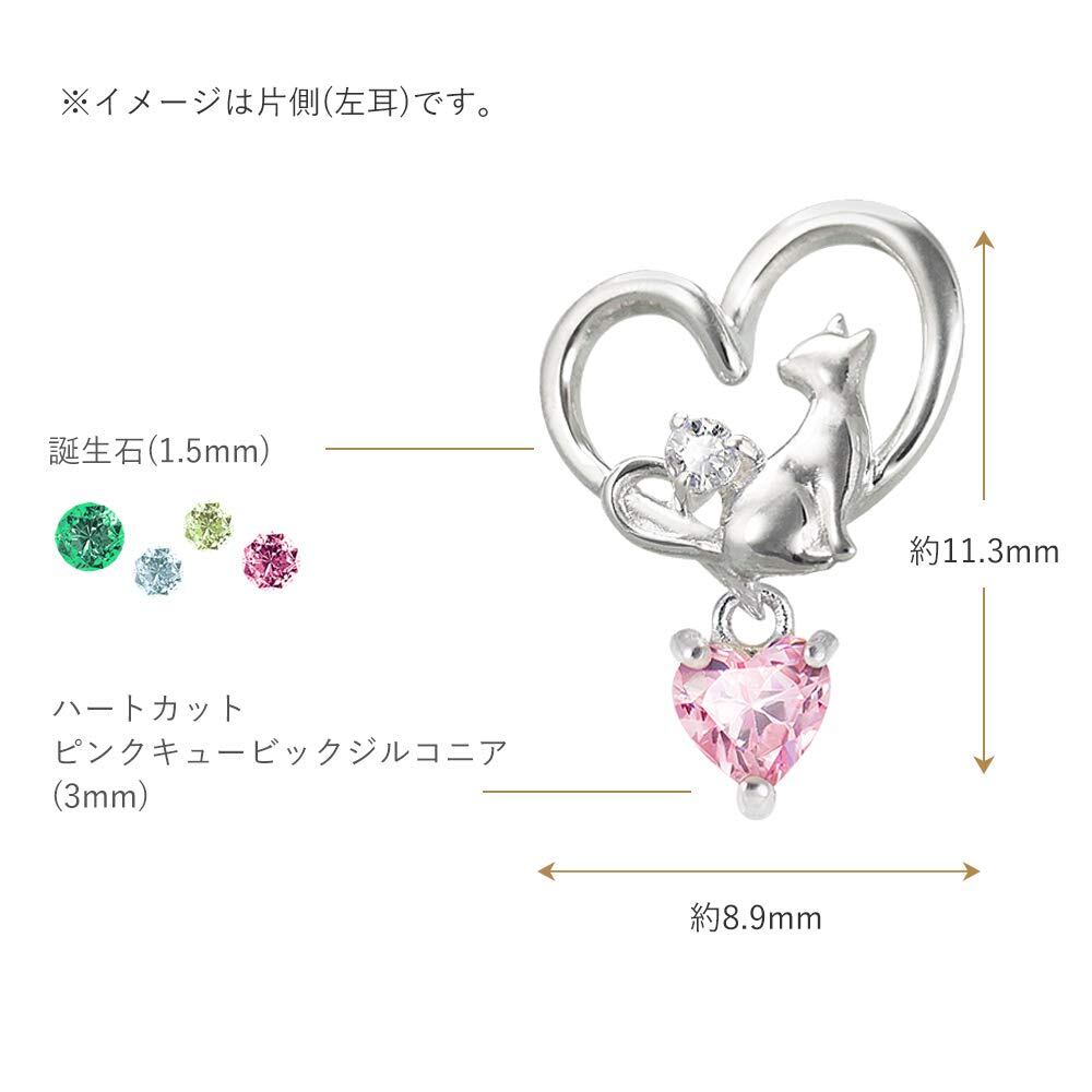 選べる 誕生石 ピアス レディース 人気 AAAランク ジルコニア ネコ ハート シルバー 誕生日 プレゼント に! MIE3127CZ_PK (12月:タンザナイト)