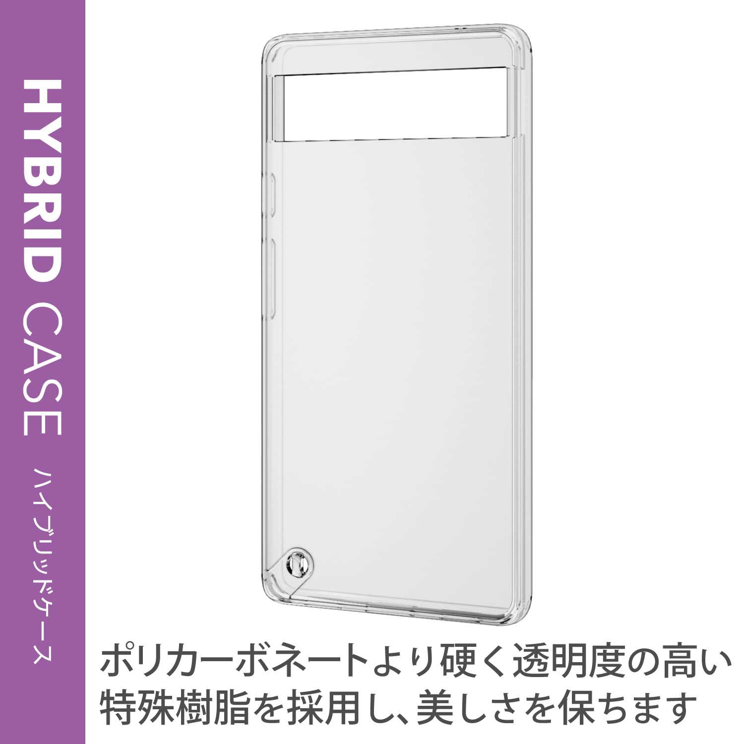 側面に弾力性のあるTPU素材を、背面に強じんで透明度の高いポリカーボネート素材を使用した、スリムなスタイルのGoogle Pixel 6a用ハイブリッドケースです。