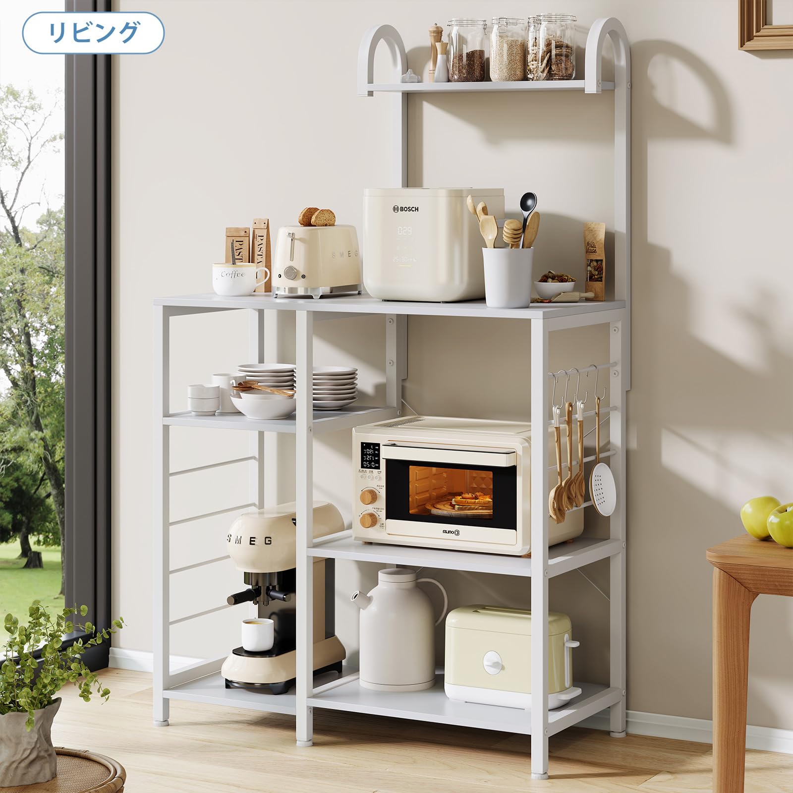 【在庫セール】SuperKois レンジラック キッチンラック レンジ台 食器棚 頑丈 高耐荷設計 大型レンジ対応 キッチン棚 キッチン収納 レンジボード キッチンカウンター 棚 耐荷重100kg 組み立て簡単 S字フック4個付き 高さ142*幅80*奥行40cm 省スペース (ホワイト)