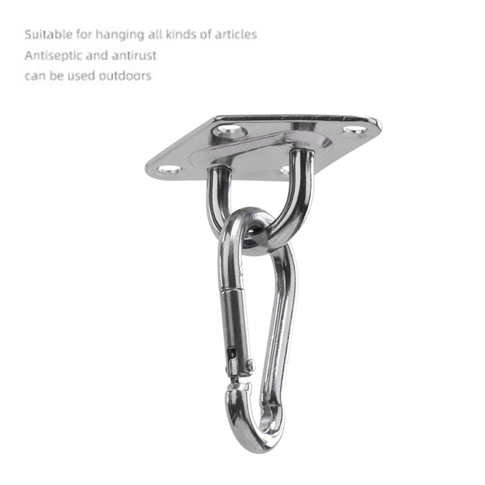WANJICHENRUI アイプレート 壁 パッドアイ カラビナ 天井 フック 壁 フック 菱形アイプレート 304ステンレス鋼 取り付け金具 木製ドア 戸棚 灯 用 パッドアイ ネジとゴム栓付き (パッドアイ6個+カラビナ6個+マッチングネジ)