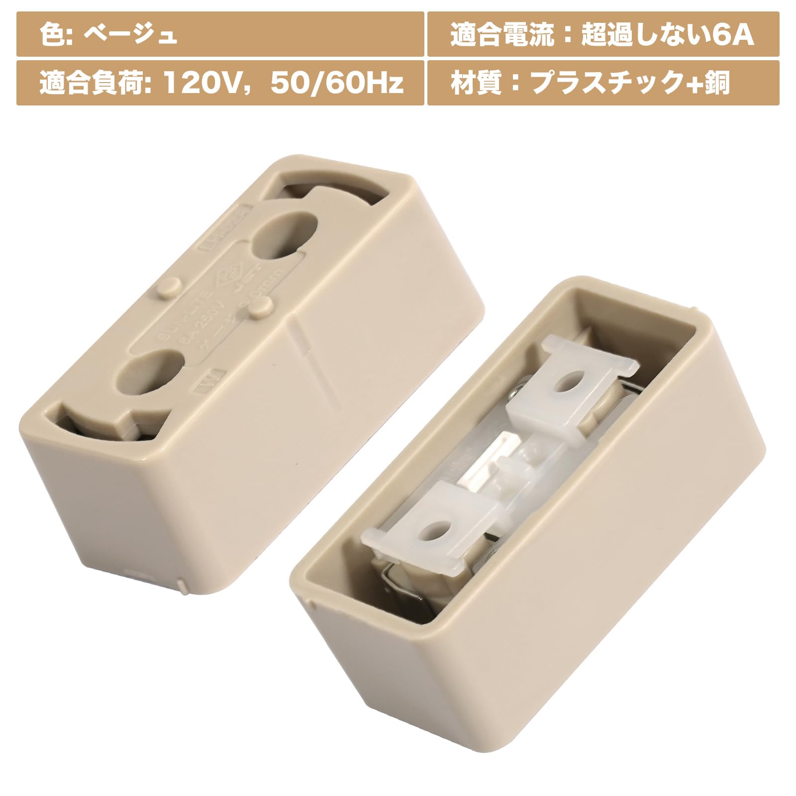 1、配線方式:ネジロック式、適合負荷: 120V,50/60Hz専用150W(6A)まで。