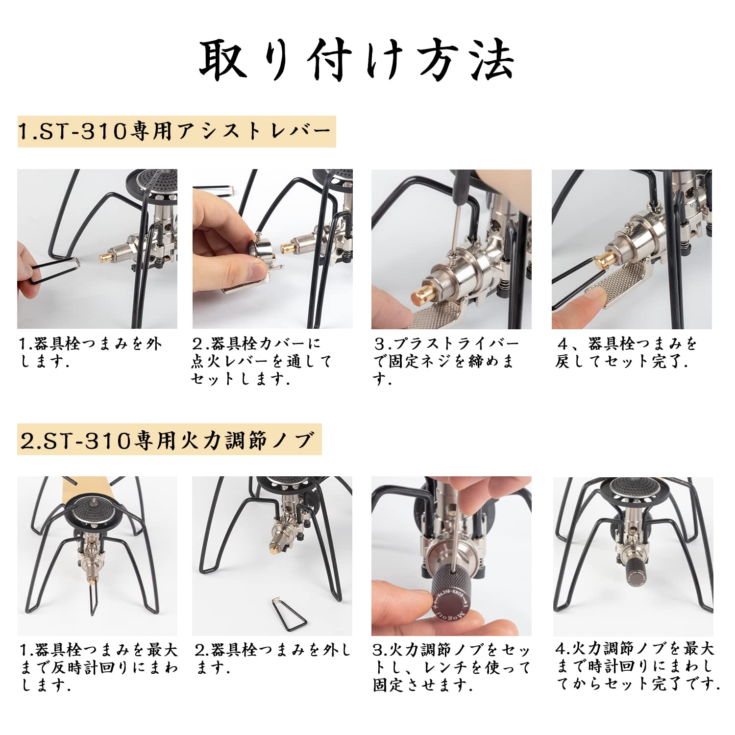 Mogoti ST-310レギュレーターストーブ専用 アシストレバー 点火用スイッチ st-310火力調節用ノブ付き アシスト二点セット ST-310用アクセサリー