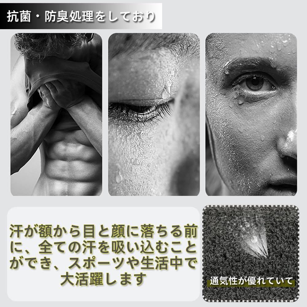 このヘッドバンドは、高品質のタオル生地とエラスティックな素材を使用しているため、発圧性が抜群で、汗をしっかりと吸収します。クールな感触が心地よく、汗をかいてもべたつかず、快適に過ごせます。また、フィット感が良いため、長時間使用していても変形しません。スポーツ中でもきちんと機能するため、多くの種目に使えます。また、抗菌・防臭処理を施しているため、長時間使用しても臭いが気になりません。洗濯してもすぐに乾くため、いつでも清潔な状態を保つことができます。さらに、男女兼用なので、彼女、彼氏、夫、妻、家族や友達へのプレゼントにも最適です。このヘッドバンドがあれば、スポーツやアクティブシーンがもっと楽しくなります。