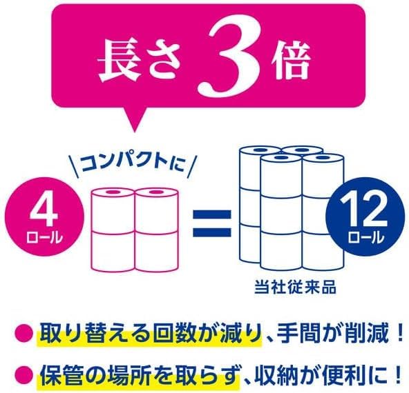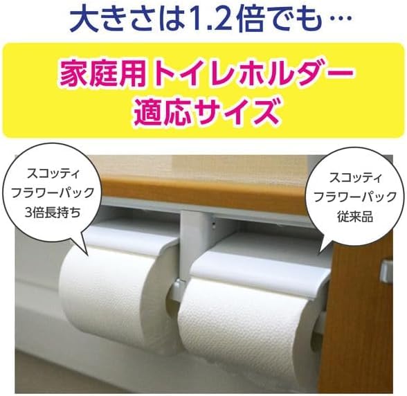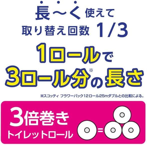 4ロールで12ロール分の長さ!※スコッティフラワー12ロールダブルと比較して、1ロールの長さが3倍
