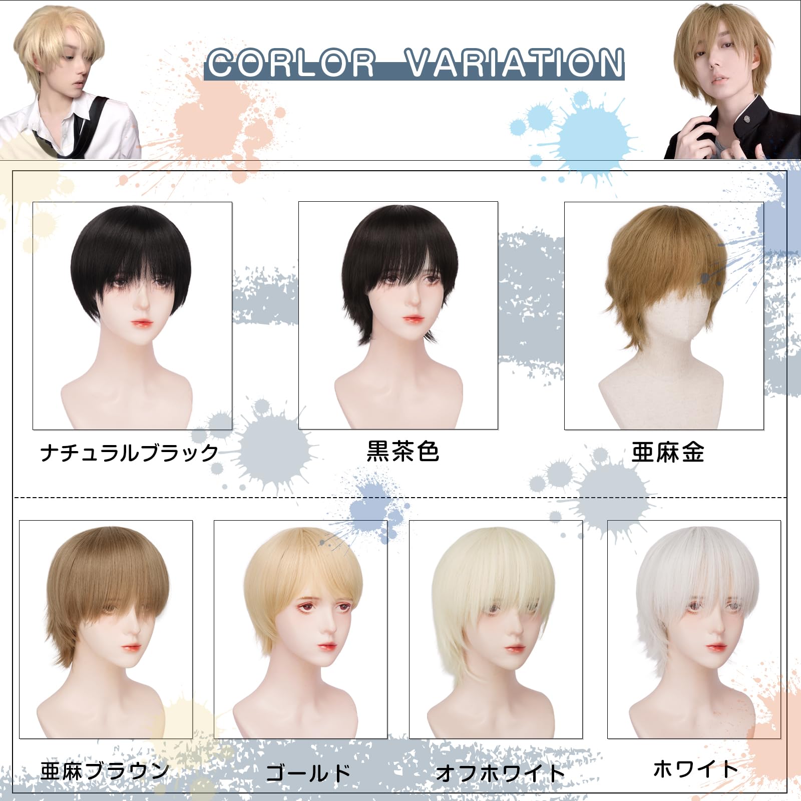 BARSDAR メンズ ウィッグ ショート かつら 男装 黒 男性 フルウィッグ 原宿 イケメン ハンサム 自然 小顔 耐熱 人気 ファッション イメチェン 男女兼用 cosplay 日常 ネット/櫛付き ホワイト
