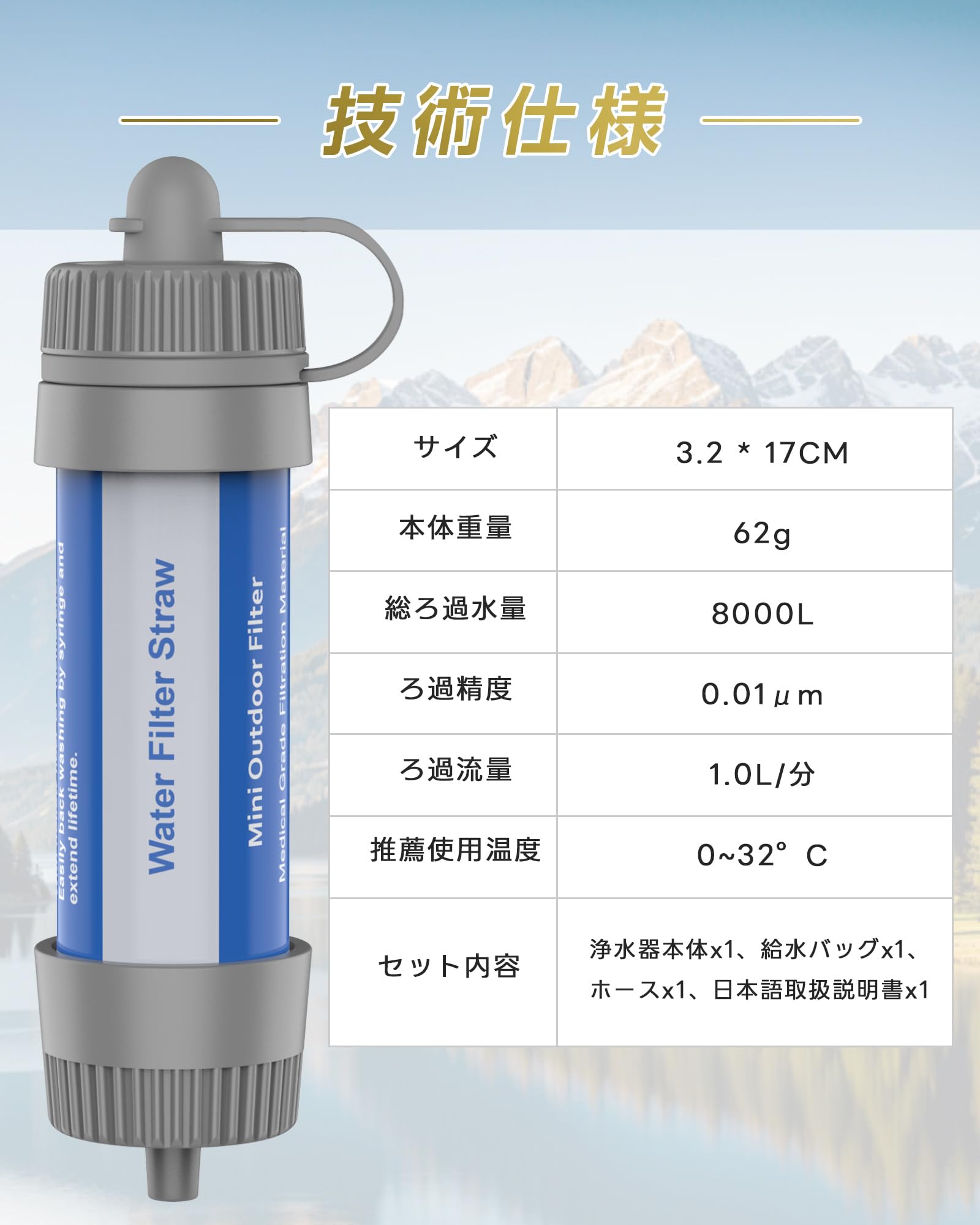 【2024新登場】携帯浄水器 濾過器 8000L 中空糸膜浄水器 浄水量 アウトドア キャンプ 災害 非常用 防災グッズ 簡易浄水器 中空糸膜ろ過 登山用 地震 災害 軽量コンパクト 日本正規品 28k