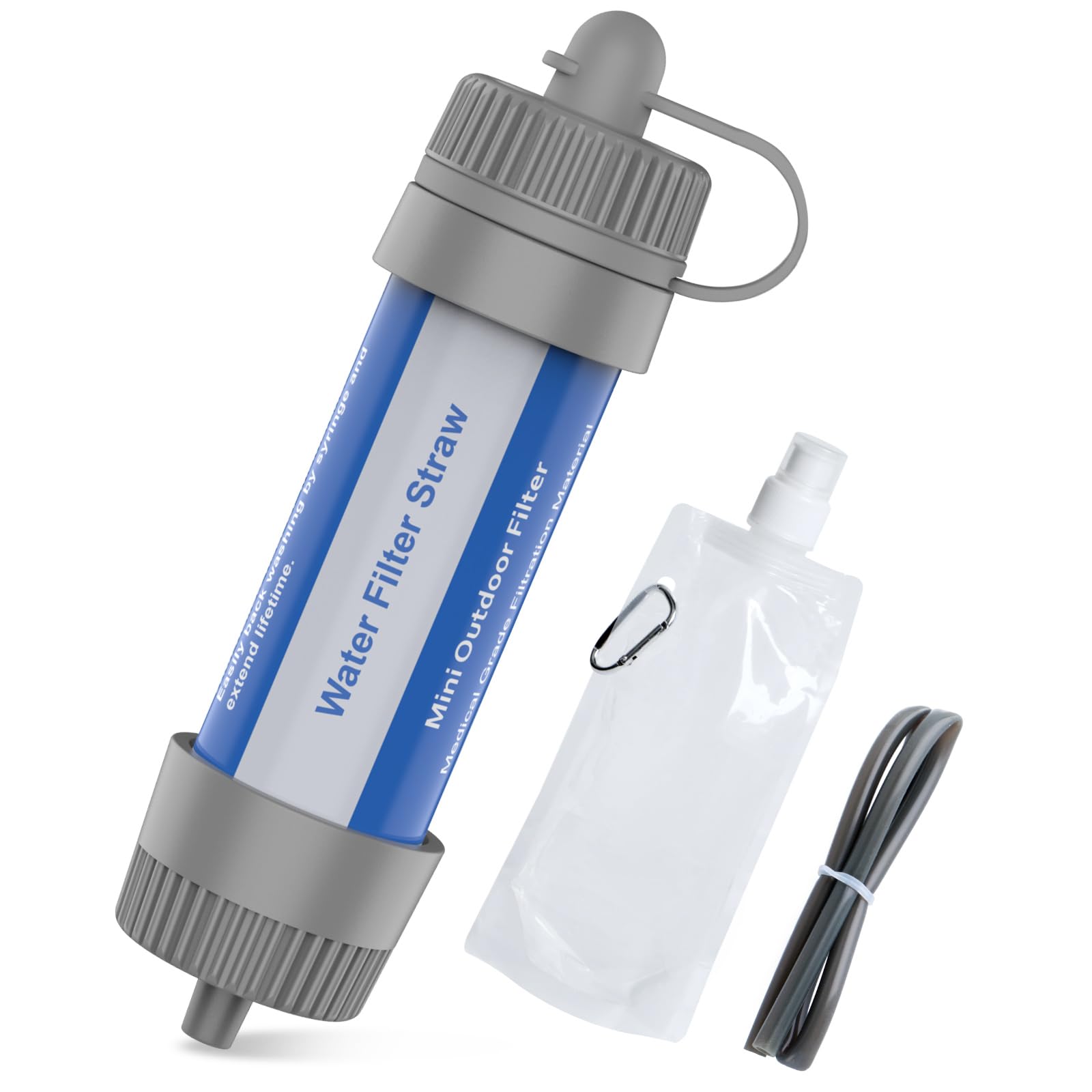 【浄水総量の増加・軽量コンパクト】約8000L分繰り返し浄水可能・キャンプや登山、サバイバルなどのアウトドアに適した、手のひらサイズで持ち運び楽々のろ過器です。携帯用浄水器サイズ 3.2cm × 17.6cm × 3.5cm 携帯用浄水器重量 62g。給水バッグが付いており、防災リュックに是非1つ入れておくことが推奨されています。アウトドア、キャンプ、登山、釣り、サバイバル、防災、災害時と様々な場面で役立つ携帯用浄水器です。注:28mmねじ込み構造 対応種類:日本国内のほとんどのペットボトルに対応しています。
