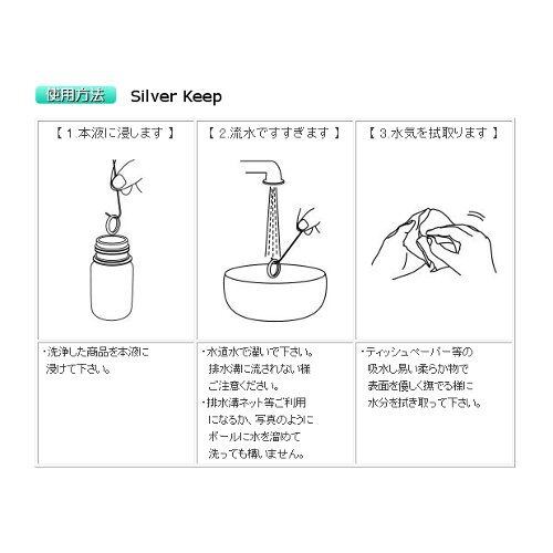 ■ シルバーキープは、シルバー専用の変色防止液です。液につけてお水で流し、柔らかい布でふき取ります。