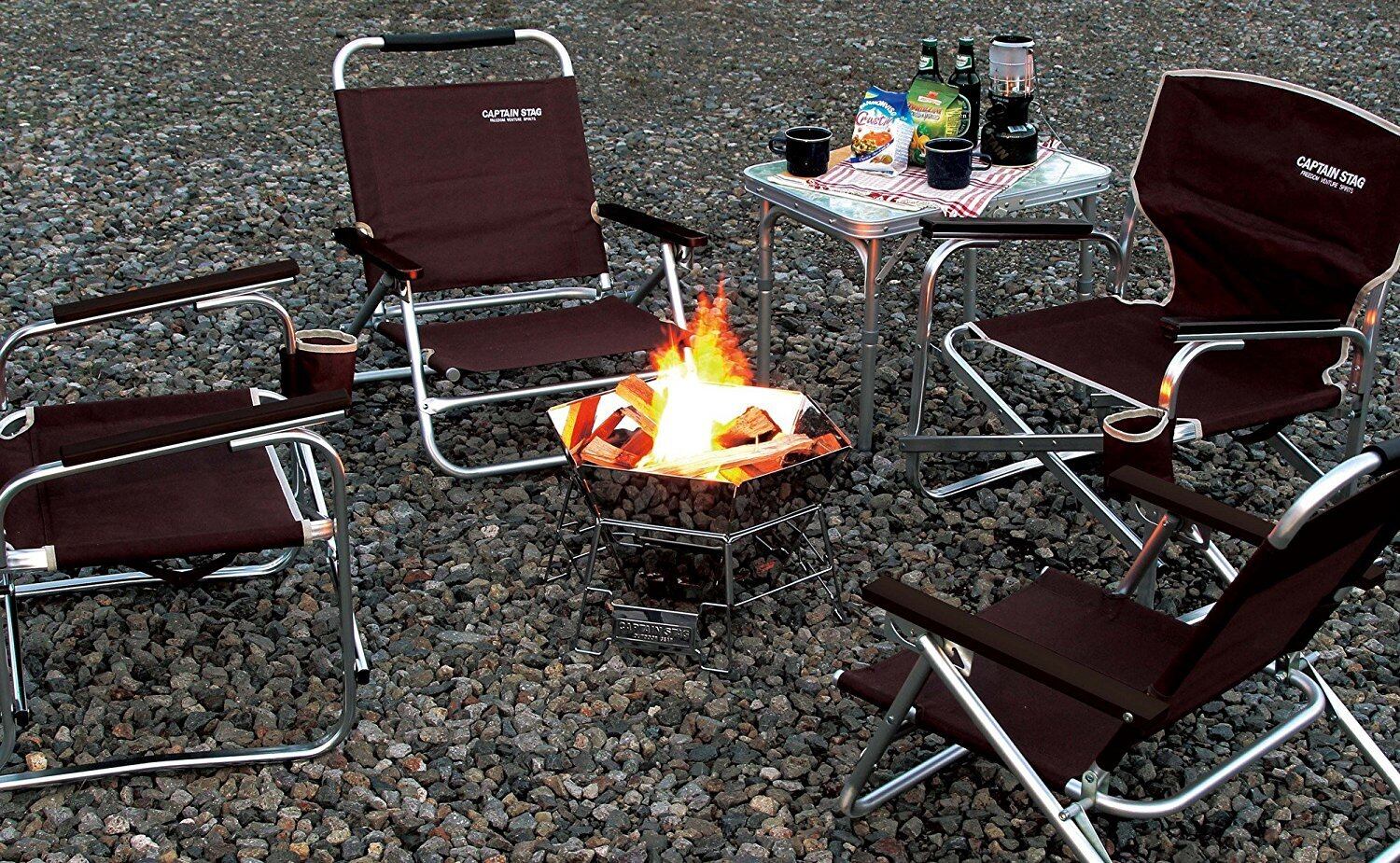 キャプテンスタッグ(CAPTAIN STAG) バーベキューコンロ 焚火台 ダッチオーブン 1台3役 ヘキサステンレス ファイア グリル バッグ付 焚き火台シート 耐熱温度700℃ グラスファイバー 六角形 M-6500/UG-3313