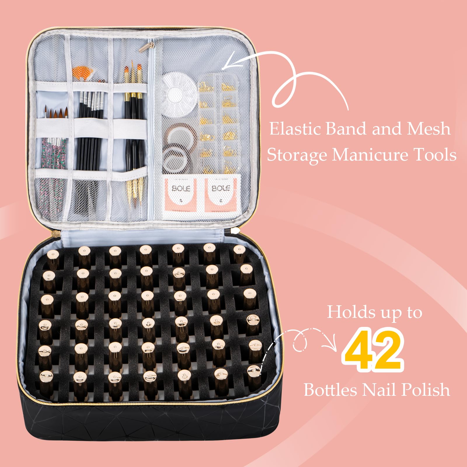 Uross ネイル 収納 ネイルケース 42本収納可能 大容量 ネイルボックス ネイル道具 ネイルバッグ 持ち運び マニキュア ネイル入れ メイクボックス コスメボックス(ブラック)