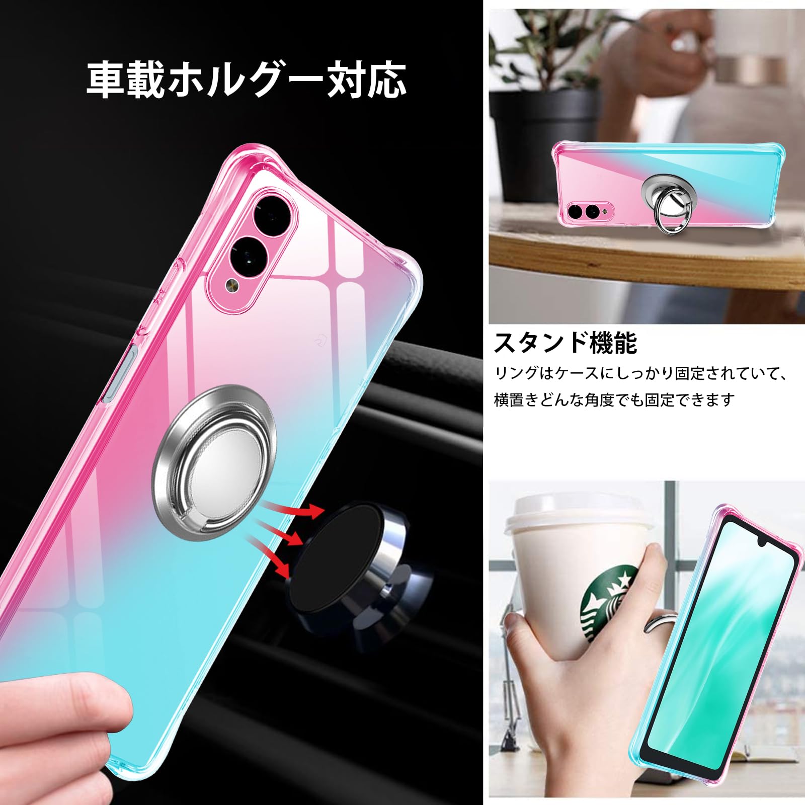 【在庫処分】arrows We2 ケース リング F-52E スマホケース TPU 薄型 軽量シリコン arrows We2 F-52E カバー グラデーション色 ケース 耐衝撃 指紋防止 車載ホルダー対応 防塵 一体型 人気 携帯カバー (ピンクグリーン)