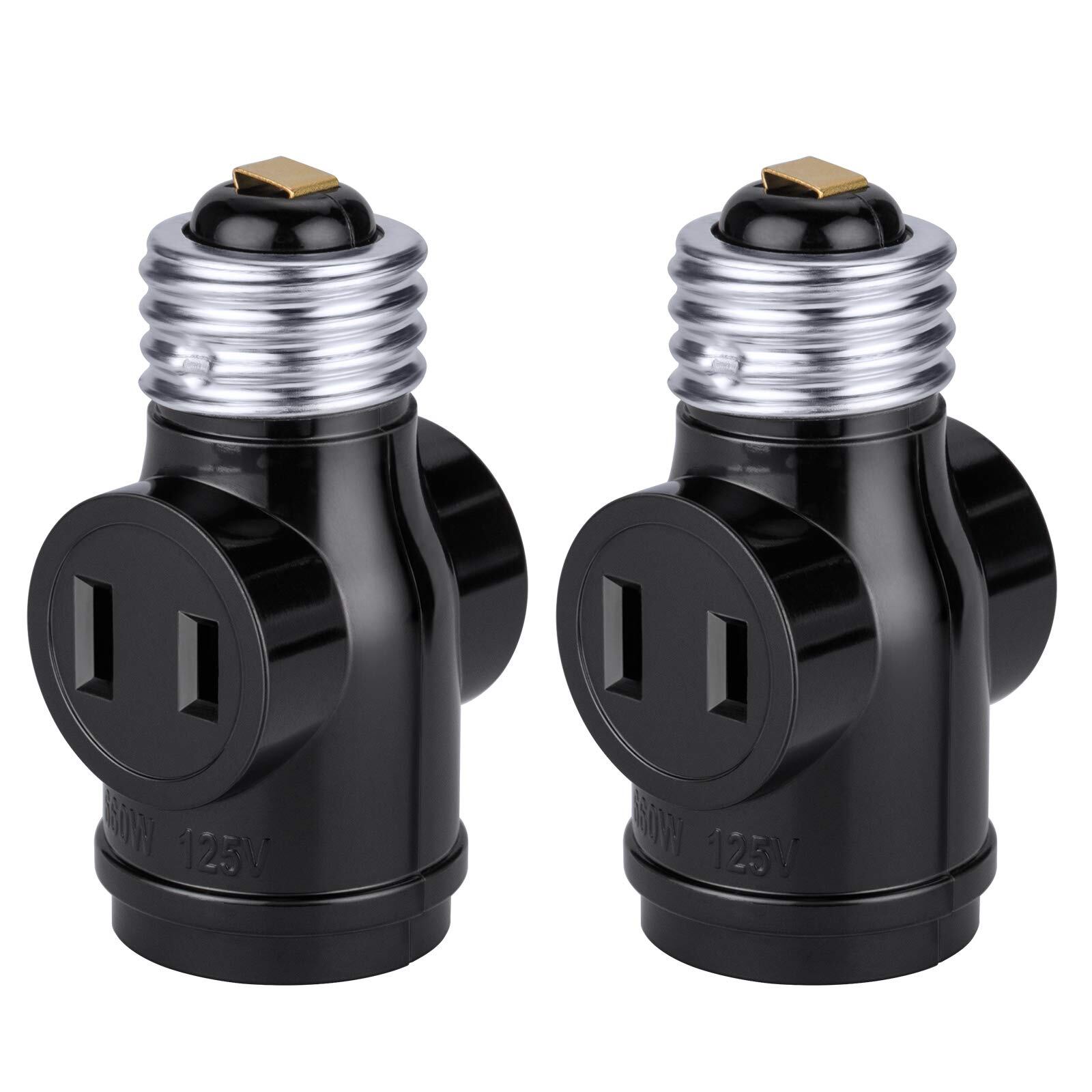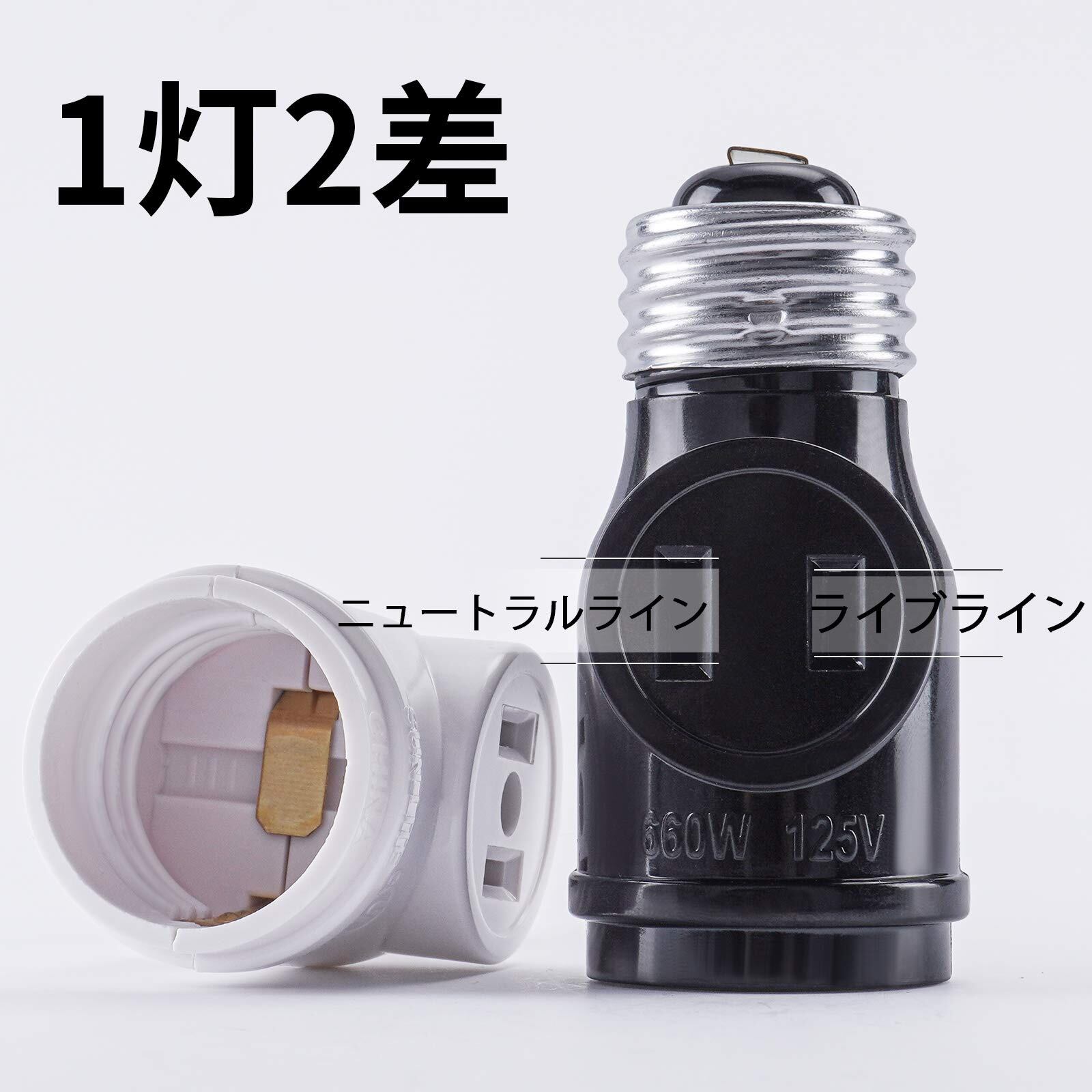 【新着商品】DiCUNO 1灯2差ソケット E26用ソケット+コンセント2口 黒 2個入