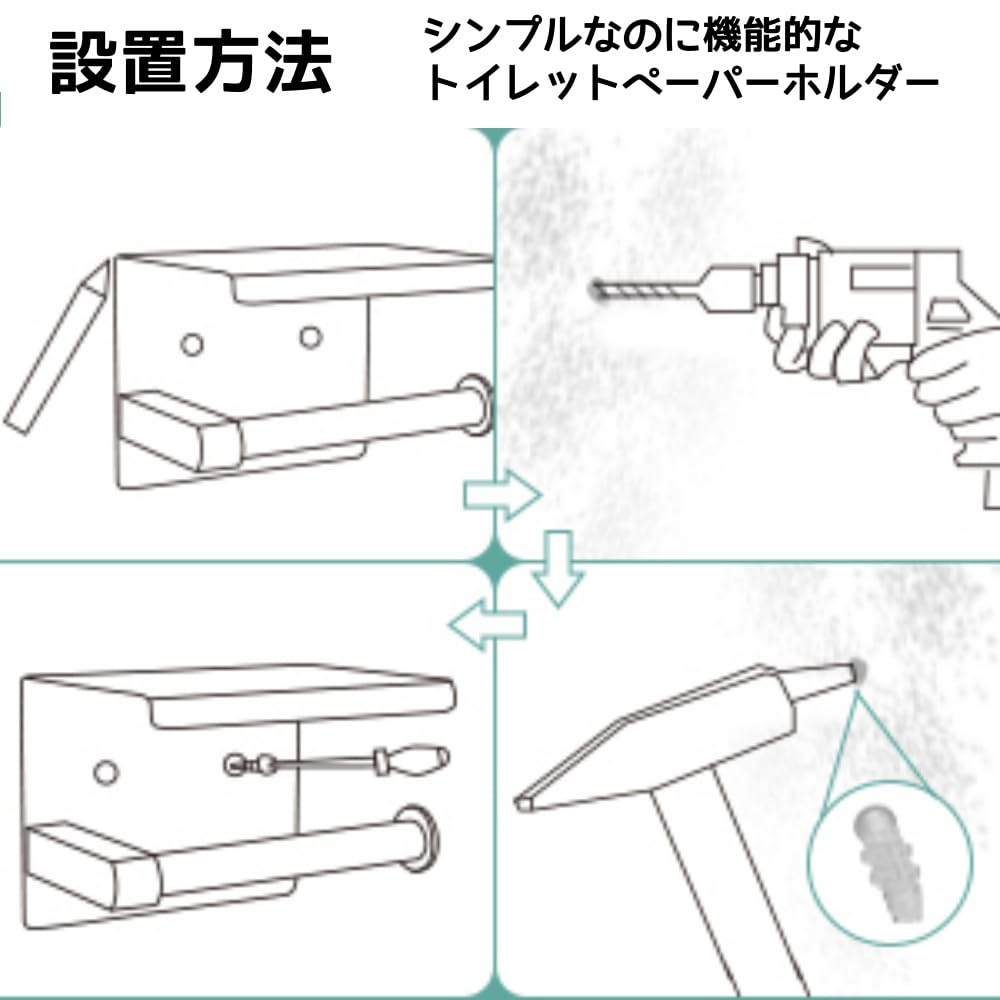 【2種類取り付け方法】DIYで簡単取り付けます。①付属プラグとネジで壁に取り付けます。②両面テープ【パケージに含まない】でペーパーホルダーを壁に粘着します。【付属品】取付ネジ、アンカープラグ、ワッシャー、ネジカバー