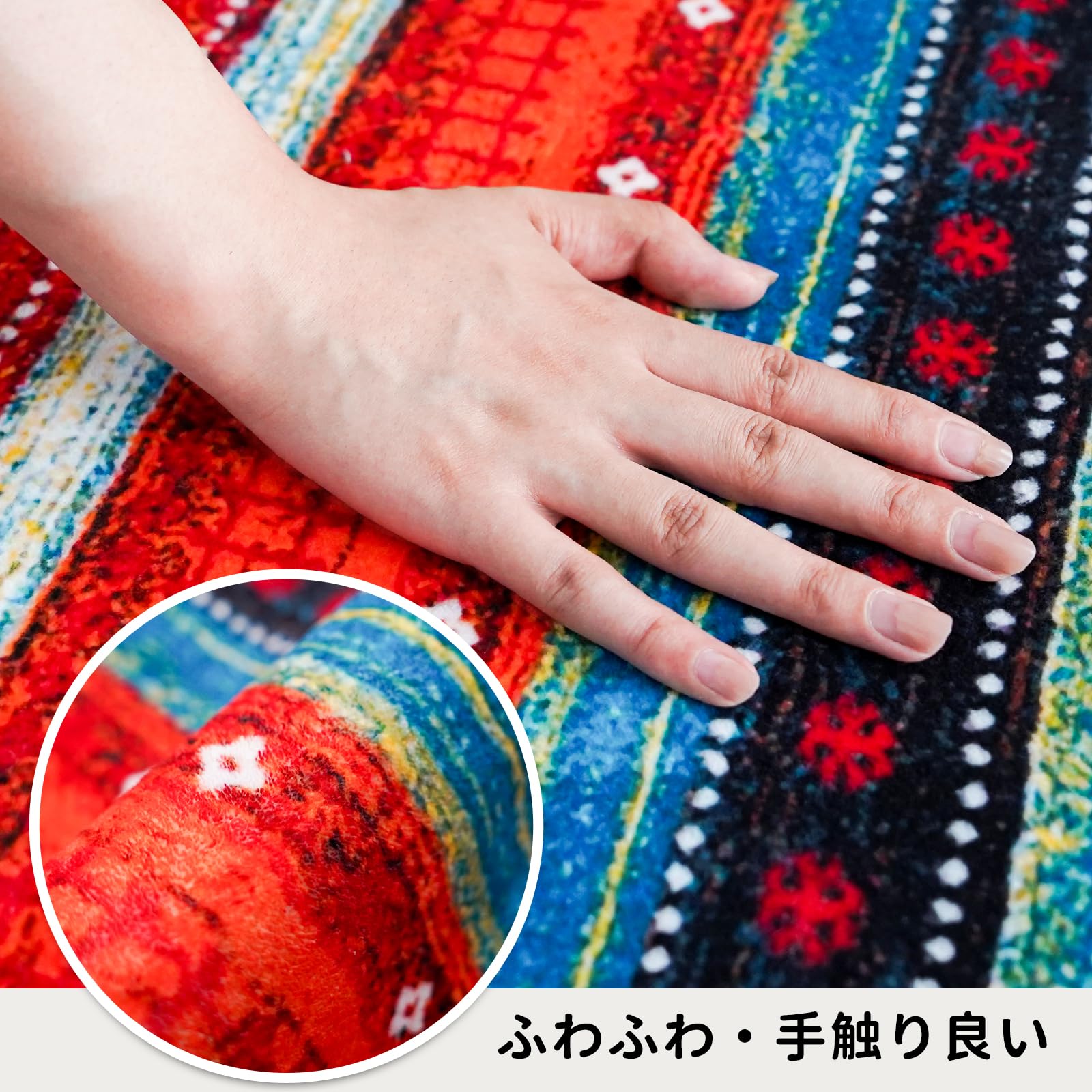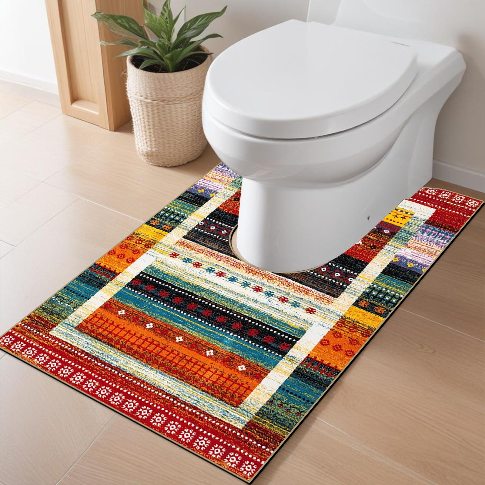 トイレマット ロング 耳長 洗える 人気: ふわふわ 吸水 速乾 抗菌 防臭 といれまっと 滑り止め トイレ敷きマット 天然素材 丸洗い 大判 toilet mat 北欧 トイレカーペット U型 トイレ足元 60*90cm (縞模様-レッド)