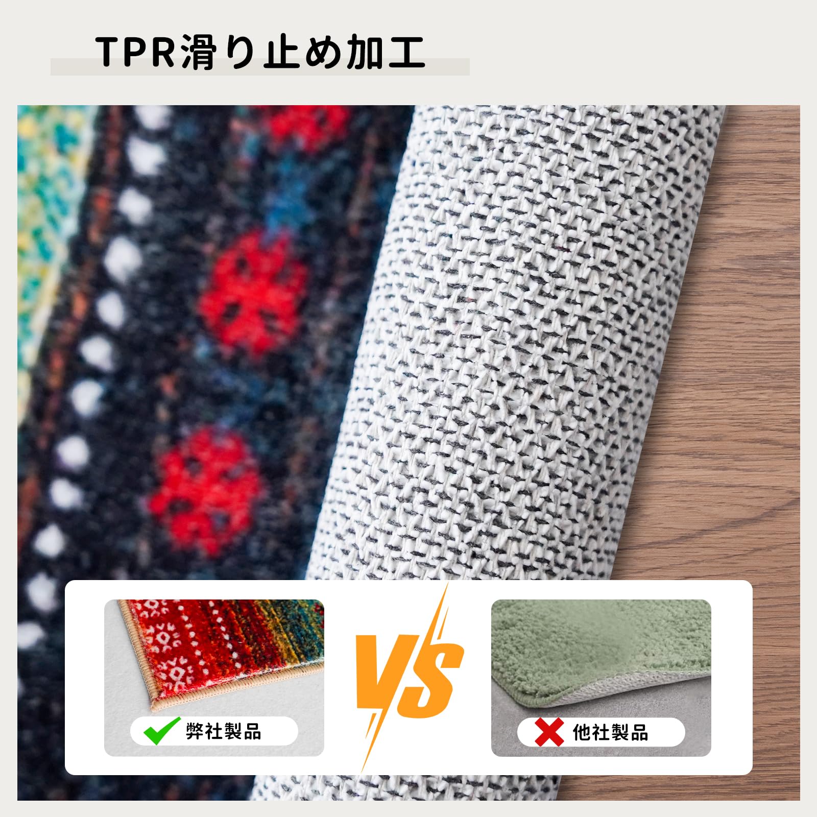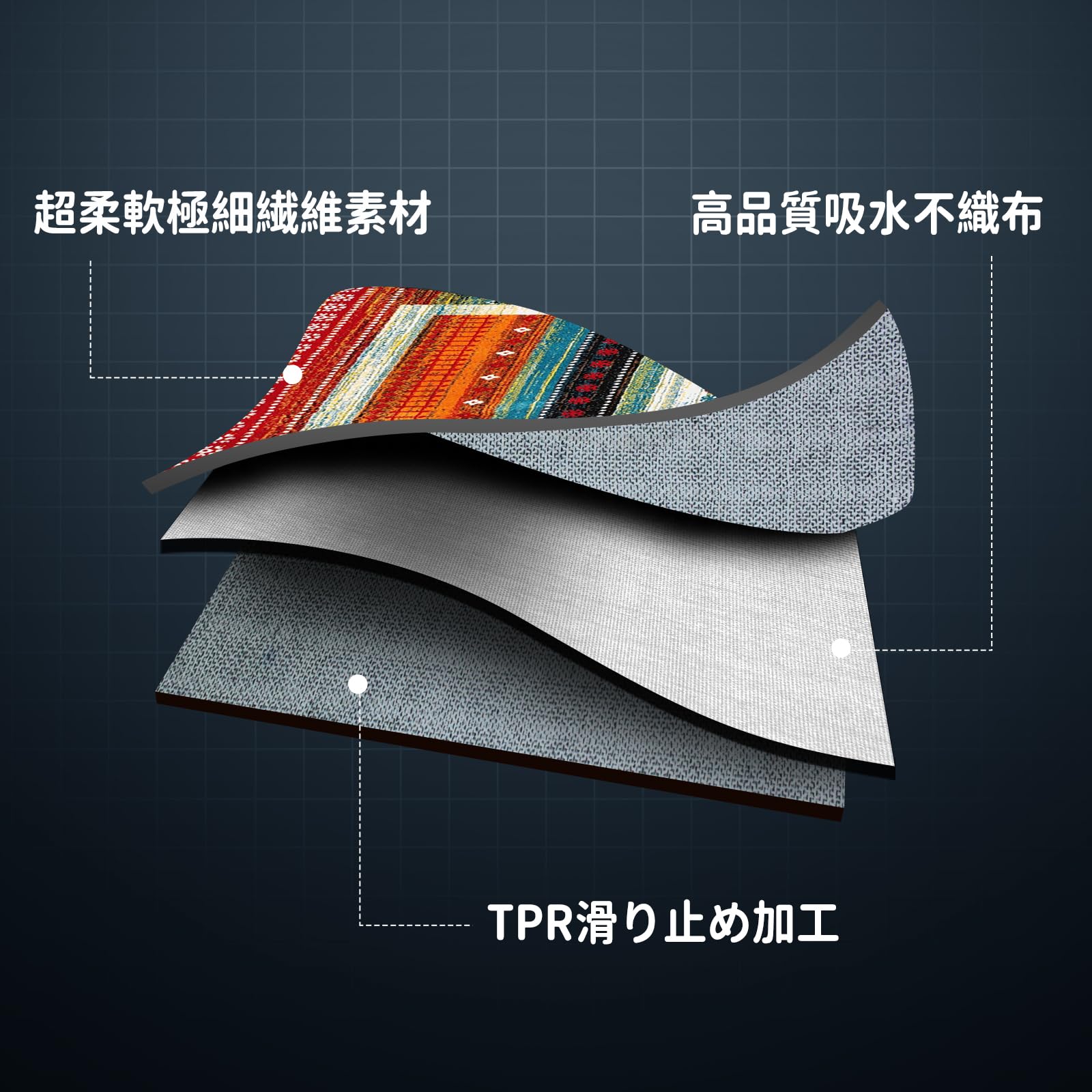 【安心滑り止め加工】トイレマットの裏面には、不織布とTPR(熱可塑性ゴム)を組み合わせた素材が使われており、優れた滑り止め効果を発揮します。この設計により、滑りやすいトイレ環境でもマットがしっかりと固定され、安定性が保たれます。さらに、不織布の透湿性のおかげで、湿気や異臭の発生を効果的に防ぐことができます。