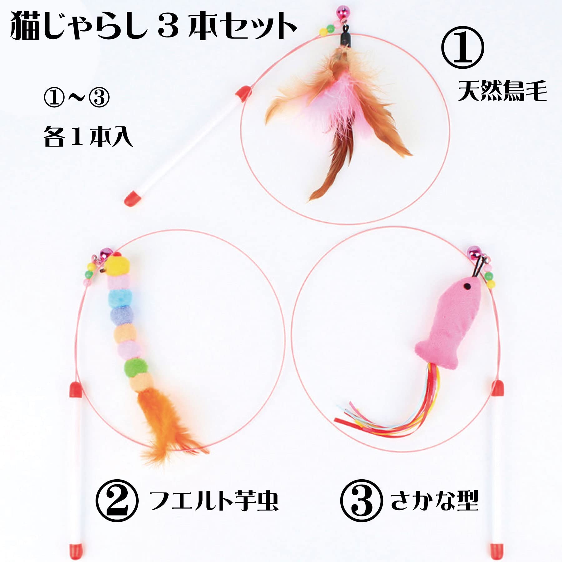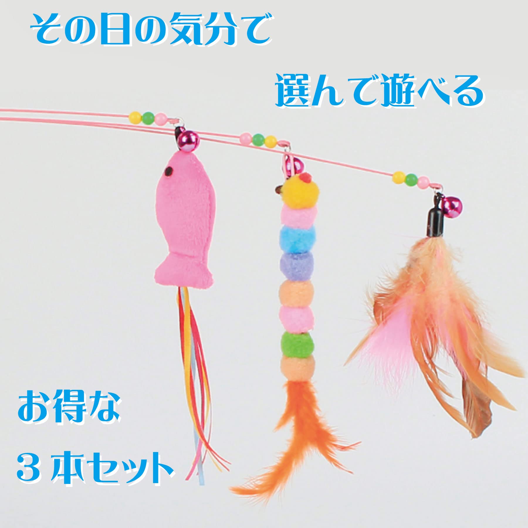 【在庫セール】猫の友社 猫じゃらし 3本セット 猫 おもちゃ ワイヤー 丈夫 頑丈 鳥毛 羽 羽根 プレゼント ギフト