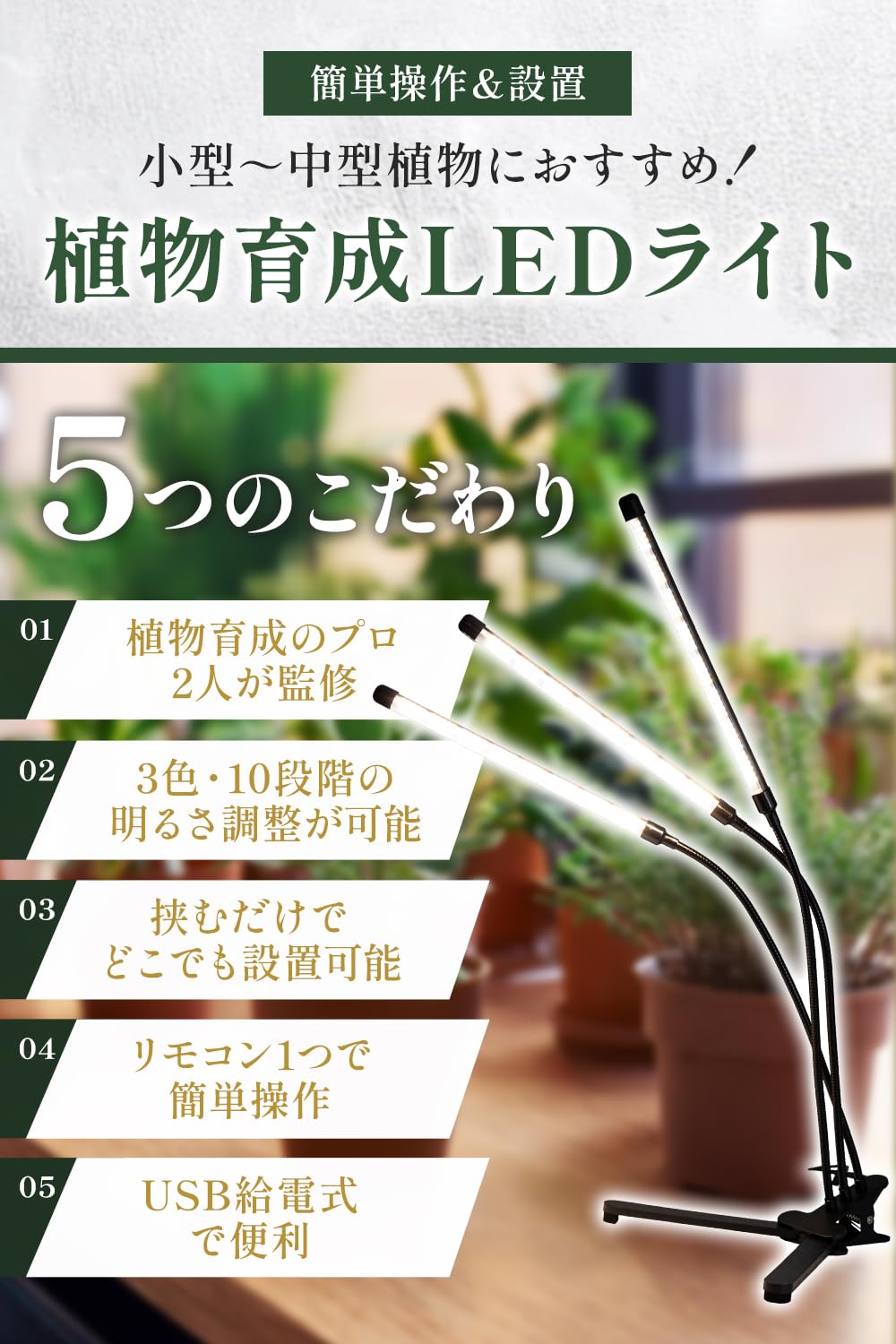 【在庫セール】植物育成ライト LED【植物育成のプロ2人が監修】小型から中型植物の育成にx置くだけで設置簡単
