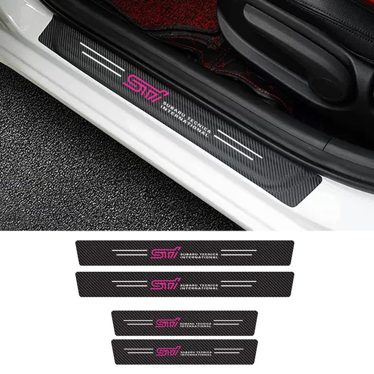 【新着商品】スバル STI サイドステップガード 車用 ドアガードステッカー レザー製 高級素材 傷隠し キズ防止 汚れ防止 4個セット (STI)