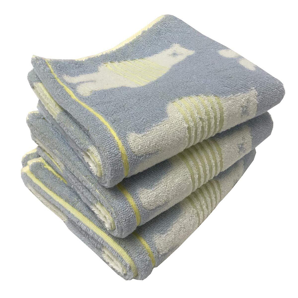 【新着商品】今治タオル フェイスタオル 3枚組 ボーダーベアー柄 34x80cm (ブルー3枚)